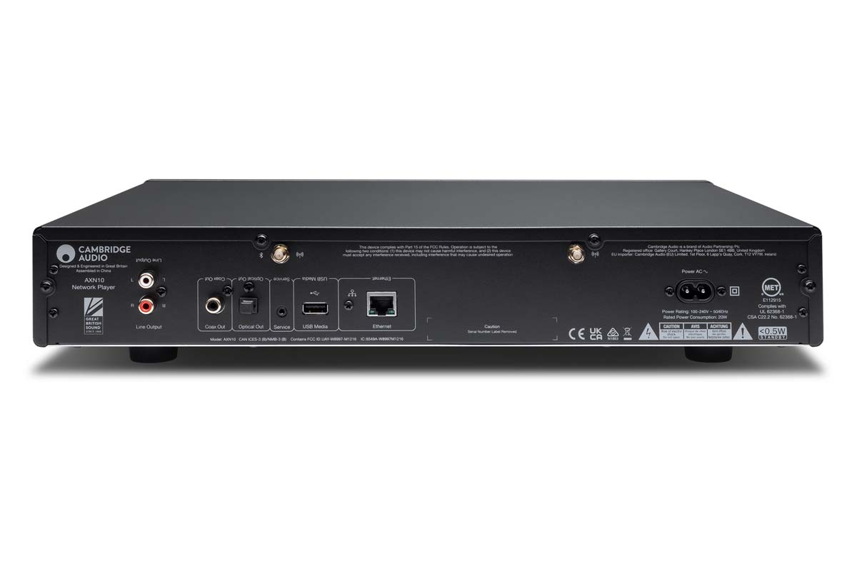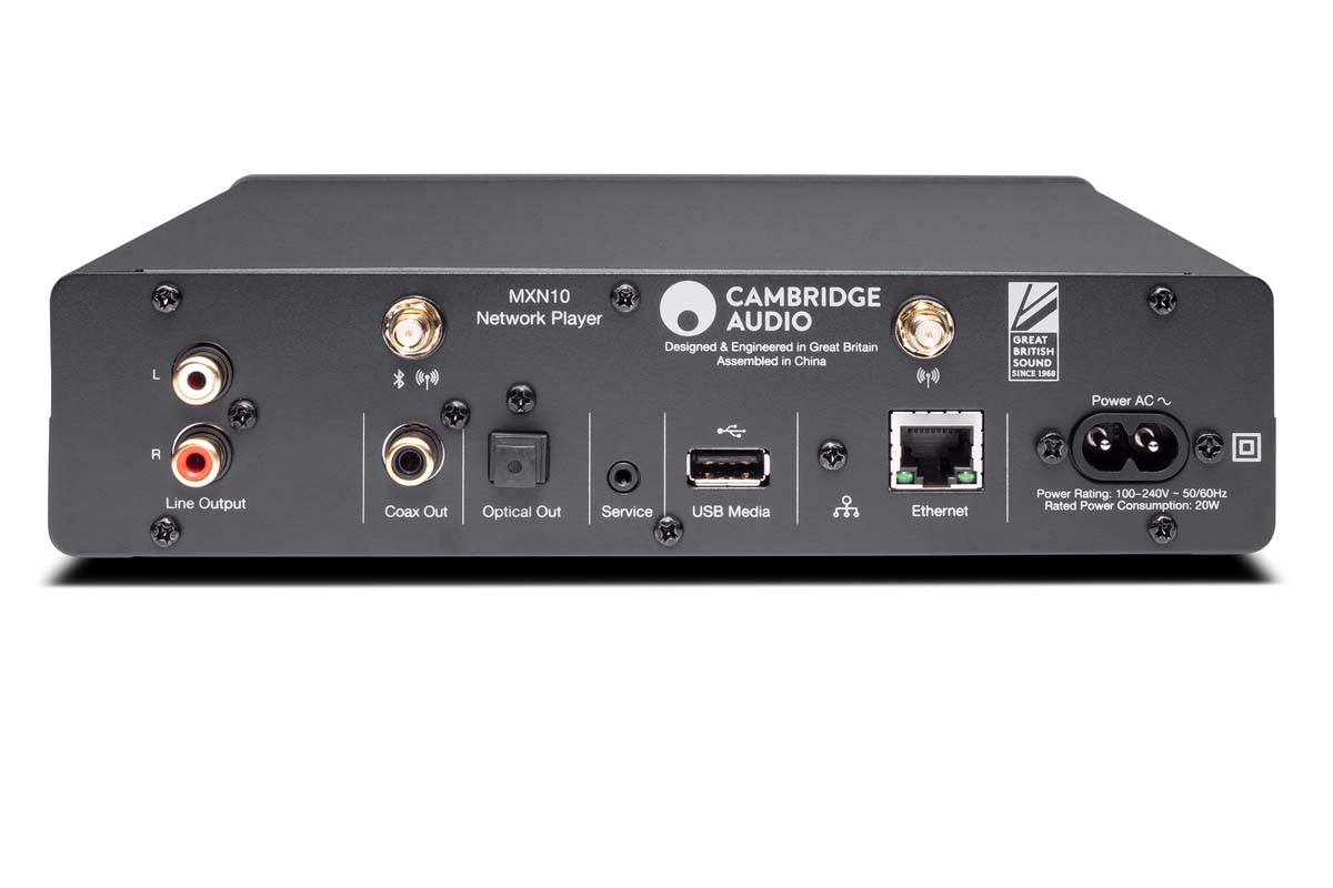 Als Ausgänge stehen analoge Buchsen nach RCA/Cinch-Norm zur Verfügung, der MXN10 stellt aber auch digitale S/PDIF Signale in optischer oder koaxialer Form zur Verfügung. So profitieren auch Komplettanlagen und Verstärker mit ausschließlich digitalen Eingängen von der Streaming-Vielfalt von Cambridge Audio StreamMagic.