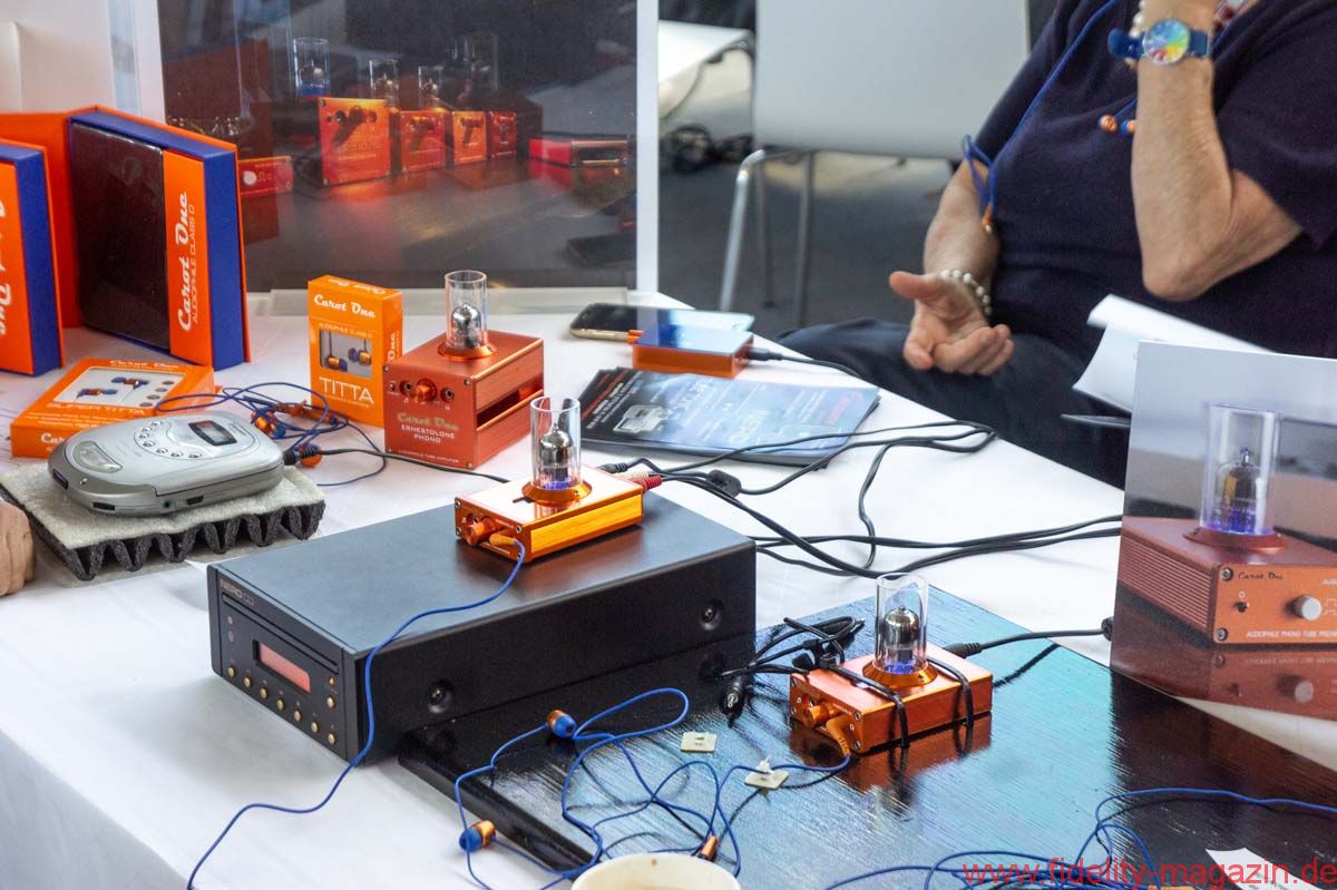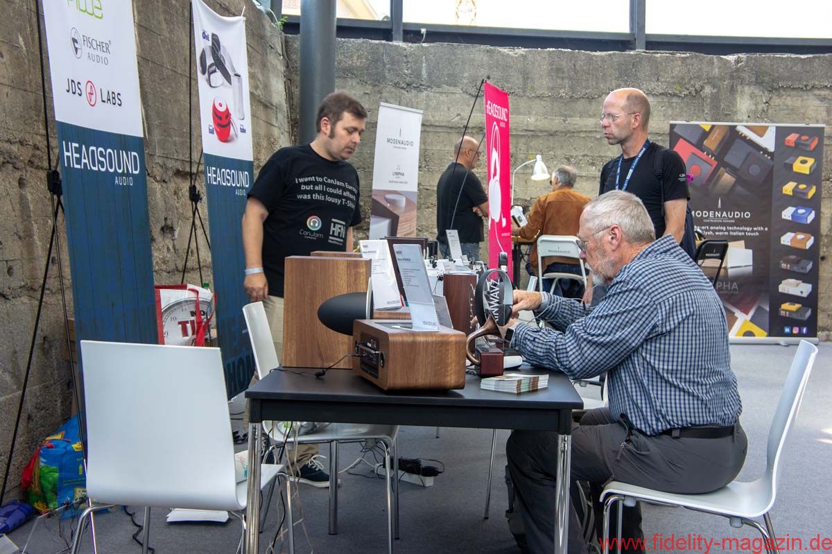 Keine Messe ohne das notwendige Zubehör. Neben eher spielerischen Gadgets wie speziellen InEar-Kabeln sind natürlich die breit vertretenen Kopfhörerverstärker zu nennen. Die Studioexperten von SPL wusste hier ebenso zu überzeugen wie die Newcomer Modenaudio aus Italien mit wunderbar farbigen Kleinverstärkern, die so wunderbar eine ästhetische Technokraten-Tristesse kontrapunktierten. Bleibt als Fazit festzuhalten, dass mit dem CanJam eine Messe der besonderen Art gelungen ist. Auch wenn die Idee der Tischmesse gerade bei offenen Kopfhörern ein nicht immer gänzlich befriedigendes Hörerlebnis ermöglicht, so begeistert doch der problemlose und entspannte Zugriff auf die ausgestellten Gerätschaften und die intensive Gesprächsatmosphäre zwischen Produzenten und Vertrieben auf der einen und Endkunden auf der anderen Seite. Und die vielleicht auch für den übergeordneten Veranstalter (High End Society Service GmbH) wichtigste Erkenntnis dieser kleinen, aber feinen Nachbarmesse: Hier spielt der Nachwuchs! Der Altersdurchschnitt der Besucher dürfte gute 20 Jahre unter dem der Durchschnittsbesucher nebenan gelegen haben. Will man den highfidelen Nachwuchs ins Boot holen, den Kunden von morgen anfixen, dann sollte der nächste CanJam noch stärker in die Hauptshow integriert werden. Also auf zum CanJam 2019 in München.