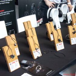 Auf die Ohren gab es natürlich auch was, musikalisch versteht sich. Da waren natürlich die ganz großen und ganz teuren Platzhirsche wie Audeze, Final Audio, Mr. Speaker oder Sonoma im Ring. Bei den beiden letzteren konnte man elektrostatische Neuentwicklungen bewundern, die beiden ersten zeigten ihre modifizierten Spitzenmodelle, etwa den Audeze LCD-4Z, der in seiner Magnesiumausführung angenehm leicht zu tragen war. Erfreulich war, dass auch die Consumerseite im niedrigeren Preissegment ausreichend bedient wurde, womit sowohl der Nachwuchs angesprochen wurde als auch diejenigen Musikfreunde, die nicht zwingend mit einem hochpreisigen Kopfhörer sich in den öffentlichen Nahverkehr wagen. Überzeugen konnten hier die StartUps im To-Go-Bereich, allen voran die Jungs von Headsound mit ihren Over- und InEars, aber auch 1more, die zudem durch hochwertige Verpackungen auf ein preisbewusstes Lifestylepublikum schielen. Womit wir bei den InEars angelangt sind, die auf einer Kopfhörermesse zweifelsohne mittlerweile zwingend dazugehören. Auffällig ist hier der Trend zur Personalisierung der InEars. Manufakturen wie Rhine sorgen dafür, dass die ausgewählten Treiber in eine passgenaue Form eingelassen werden, die nicht nur eine bequeme Passform, sondern auch für eine perfekte Abdichtung sorgt. Die Garantie für diese Art der Perfektion ist dadurch gegeben, dass es in aller Regel Hörgeräteakustiker sind, die hier ihr Handwerk verrichten. Wer wollte, konnte dies vor Ort mit einer Anpassung gleich mal praktisch ausprobieren. So hautnah im wahrsten Sinne des Wortes kann also eine HighEnd-Show auch sein – Respekt.