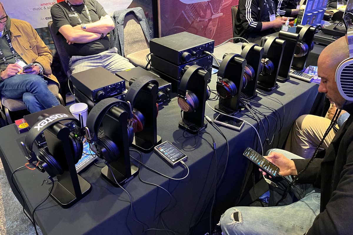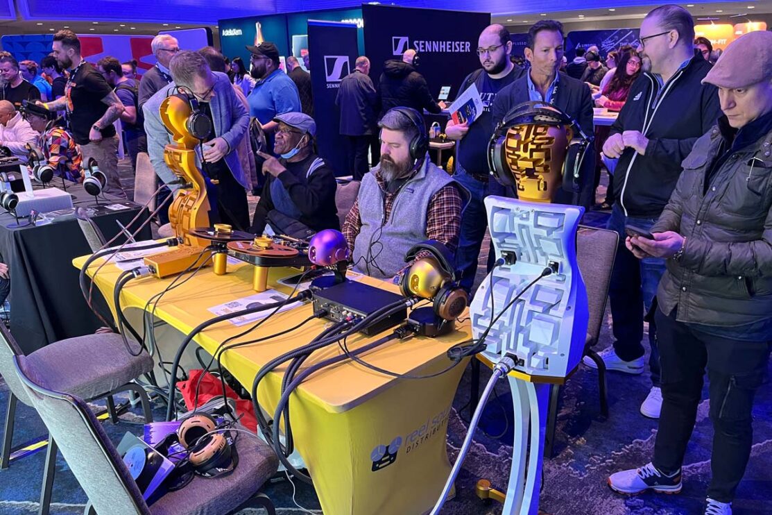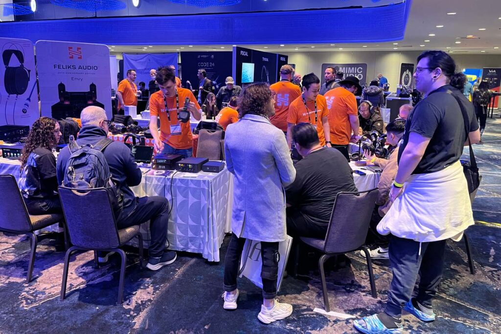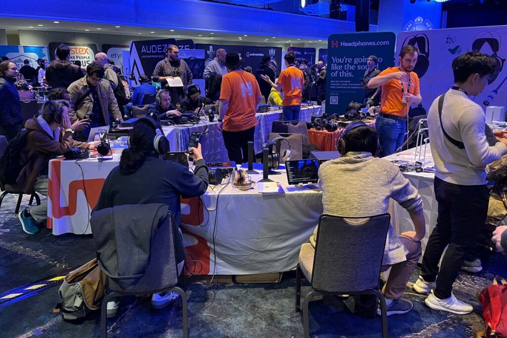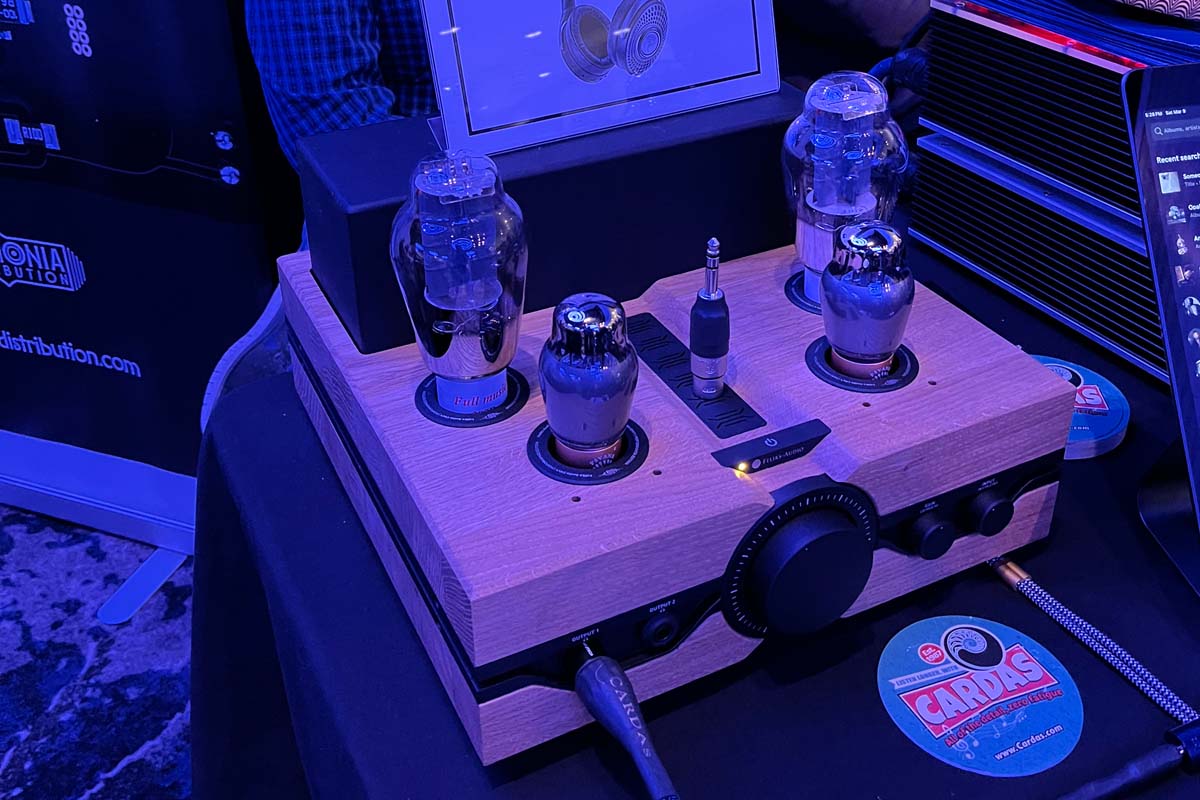 Zugegeben, den Großteil des ersten Tages habe ich damit verbracht, mit Freunden zu plaudern, anstatt meiner journalistischen Pflicht nachzukommen, dabei hat die Messe eine kritische Masse erreicht, bei der es jetzt eine Riesenmenge zu hören und zu sehen gibt. Im Eilmarsch könnte man die Messe innerhalb einiger Stunden durcharbeiten, aber auf seine Kosten käme man so nicht. Mehr als 80 Aussteller zeigten eine extrem vielfältige Auswahl von In-Ears und Over-Ears, dynamischen, magnetostatischen und elektrostatischen Kopfhörern und auch xMEMS-Modellen (jawohl, eine neue Kategorie!) zu Preisen von unter 100 Dollar bis hin zu Tausenden. Die Elektronik war ebenso vielfältig, wobei Röhrenhardware auffällig stark vertreten war – Pi mal Daumen machte sie wohl um die 30 Prozent der ausgestellten Geräte aus. Entweder mögen Kopfhörerenthusiasten den Klang von Vakuumröhren, oder Röhren sind eine ideale klangliche Ergänzung zu Kopfhörern – oder beides.