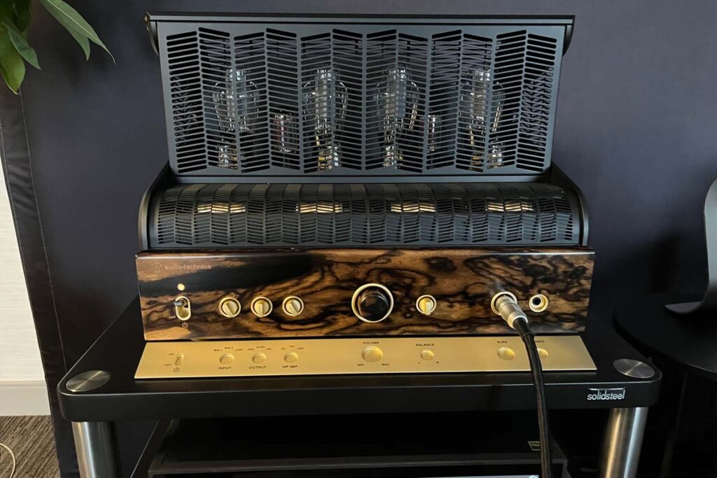 Um der Transparenz Willen: Ich bin als Berater für Audio-Technica tätig. Ungeachtet dessen wäre dieser Messebericht nicht vollständig, wenn ich nicht das Nordamerika-Debüt des Röhren-Kopfhörerverstärkers/Vorverstärkers der Narukami-Serie HPA-KG Naru von A-T und des dazugehörigen dynamischen Kopfhörers ATH-AWKG (108.000 $) erwähnen würde. Beide Modelle bestehen aus dem seltenen Kurogaki-Holz, und im Verstärker kommen Audio-Technica-gelabelte Takatsuki 300B-Leistungsröhren zum Einsatz. Ich käme mir seltsam vor, wenn ich näher auf dieses Setup eingehen würde, also verweise ich Sie stattdessen auf dieses YouTube-Video von Secrets of Home Theater and High Fidelity. Was ich allerdings guten gewissens sagen kann ist, dass der Verstärker und die Kopfhörer absolut beeindruckend aussehen.