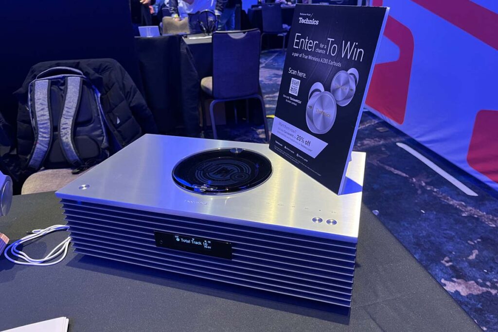 Technics hatte eine Vielzahl seiner neuesten Premium Class-Kopfhörer ausgestellt, von 169,95 $ bis hin zum Spitzenmodell EAH-TZ700, einem 1.199 $ teuren In-Ear-Monitor. Viele verfügten über eine aktive Geräuschunterdrückung. Was mir jedoch wirklich ins Auge fiel, waren die einteiligen Audiosysteme: das Ottava Class SC-C70MK2 (1.099,95 $), bei dem sogar die Lautsprecher integriert sind, und der Premium Class SA-C600 Networking Integrated Amp/Streamer/CD-Player (1.099,95 $). Bei ihrem Anblick drängte sich mir der Gedanke auf, dass solche Geräte herausgekommen wären, wenn Bose sich beim Design seiner WaveRadios richtig ins Zeug gelegt hätte. Die Verarbeitung der Technics-Modelle war, wie bei allen Technics-Produkten, die ich seit der Wiedergeburt der Marke gesehen habe, erstklassig.