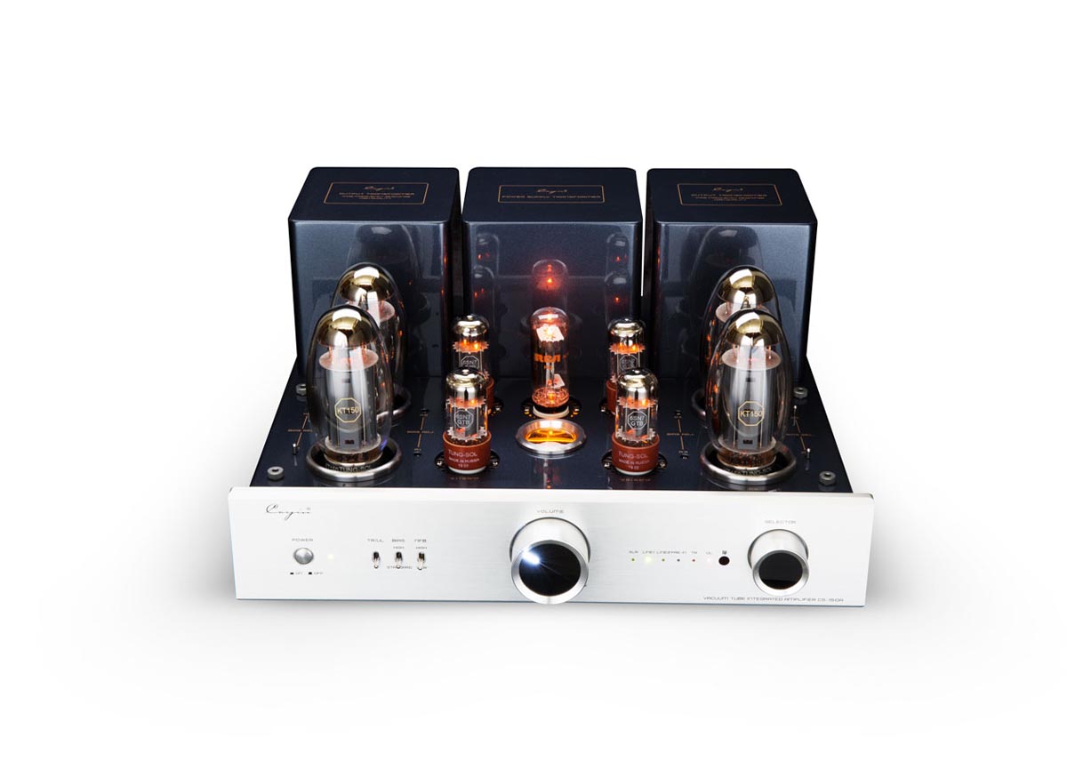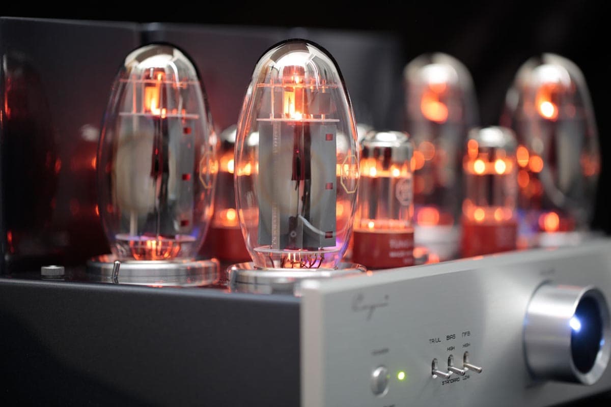 Dabei ist es aber gerade die Technik, die den CS-150A zu etwas Besonderem macht. Selektierte Röhren vom Typ Tung-Sol 6SN7GTB kommen für die Eingangs- und Treiberstufe zum Einsatz. Vier Tung-Sol KT150 oder wahlweise vier KT120 finden Verwendung als Hochleistungs-Endstufenröhren. Die Spannungsgleichrichtung erfolgt durch eine RCA 22DE4 NOS Röhre.