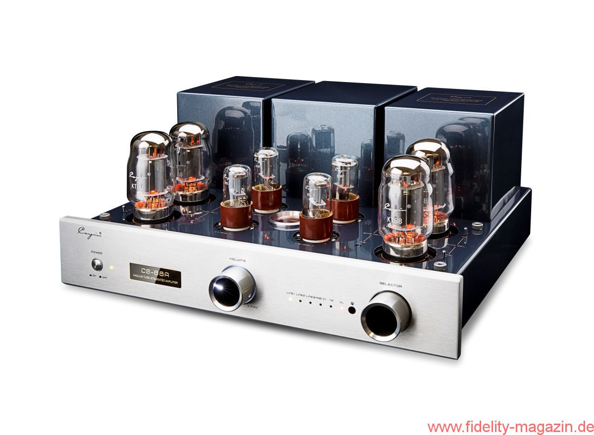 Der Cayin CS-88A löst den beliebten Vollverstärker A-88TMK2 Selection ab. Er fährt mehr Leistung auf und vertraut auf ein größeres Netzteil. Der CS-88A liefert 2 x 48 Watt Ultralinear oder 2 x 27 Watt im Trioden-Modus. Sein Preis wird bei 3.400 Euro liegen.