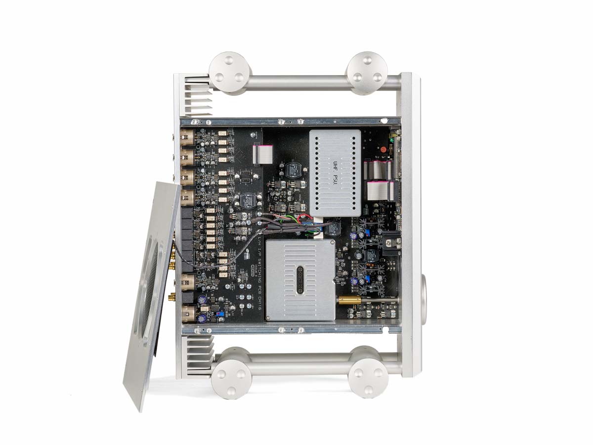 Davon angefixt korrespondierte ich mehrfach mit den Entwicklern in Kent, die sich angenehm offen und informativ in Sachen Entwicklungspolitk und -strategie zeigten und mir den spezifischen Ansatz von Chord Electronics darlegten. In den 1980er Jahren arbeitete Firmengründer John Franks als Elektronikingenieur bei Marconi Avionics, die Elektronik für Flugzeuge herstellten. Franks Fachgebiet waren Ultrahochfrequenz-Stromversorgungen, und sein fundiertes Wissen in diesem Bereich brachte den audiophilen Ingenieur dazu, die Versorgungsschienen eines Verstärkers mithilfe eines starken magnetischen Flusses in einem speziellen Hochfrequenztransformator miteinander zu verbinden. Dieses „dynamic coupling“ beseitigte erfolgreich kurzfristige Verzerrungen. Franks erkannte, dass diese spezifische Technik für Verstärker, die üblicherweise mit gewöhnlichen Niederfrequenz-Netzteilen ausgestattet waren, von großem Nutzen sein würde. Zudem verwendete er speziell abgeschirmte Schaltnetzteile, die in der Lage waren, die Kondensatoren schneller wieder aufzuladen, als es Ringkerntransformatoren möglich wäre. Diese Herangehensweise an das technische Design ist in modifizierter und weiterentwickelter Weise auch in der aktuellen Produktionsreihe zu finden.