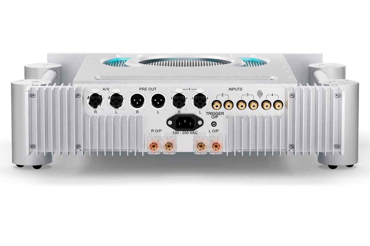 Der Ultima Integrated ist ein puristischer Hochpegelverstärker mit zwei praktischen Anschlussoptionen. Am XLR-symmetrischen Pre-Out kann eine Endstufe etwa für Bi-Amping andocken. Über den ebenfalls symmetrischen „A/V-Bypass“-Eingang lässt sich die potente eigene Leistungssektion von einer externen (Heimkino-)Vorstufe dirigieren. Ansonsten gibt es vier Anschlüsse für Quellgeräte und einen Satz Lautsprecherklemmen. Fertig!