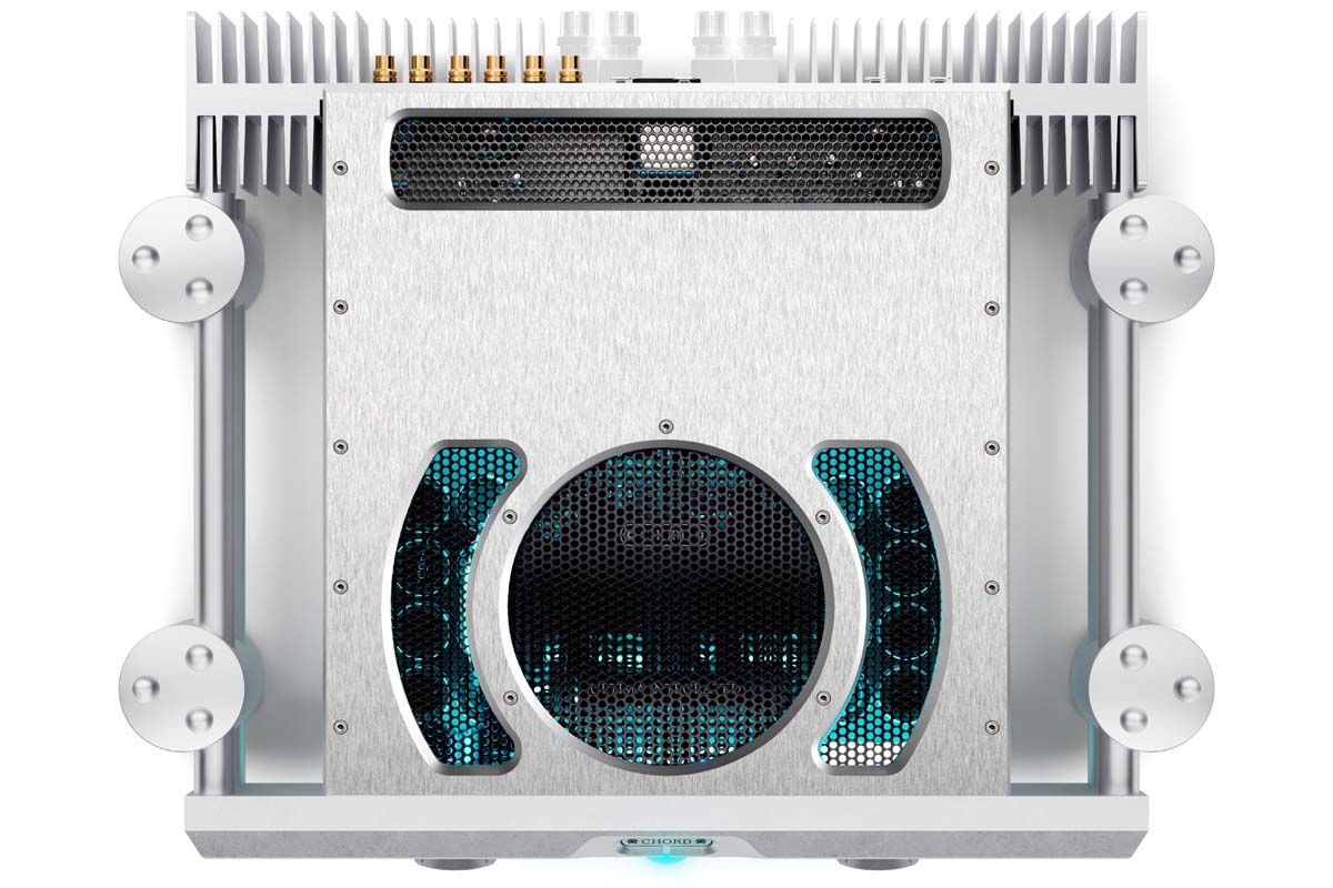 Die Baureihe Ultima ist Chords zweitgrößte Produktfamilie. Sie umfasst ausschließlich Verstärker. In allen kommt die jüngste, inzwischen schon fünfte Generation der Chord’schen Verstärkerschaltung namens, genau, Ultima zum Einsatz. Das technische Highlight ist eine Dual-Feed-Forward-Schaltung zur Reduzierung von Verzerrungen. Prinzipiell handelt es sich dabei um eine Variante der Mitkopplung, von John Franks in jahrelanger Entwicklungsarbeit verfeinert.
