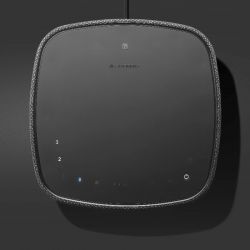 Selbstverständlich bietet der Yoyo L nicht nur maximale Anschlussvielfalt sondern auch herausragende Leistung: Unter der edlen Oberfläche des Audio Hubs verbergen sich insgesamt sechs Hochleistungs-Lautsprecher. Auf der Frontseite, sowie links und rechts verrichten je ein Breitband-Speaker und ein Subwoofer ihren Dienst. Jeder einzelne Lautsprecher wird dabei von einem eigenen verzerrungsarmen Verstärker angetrieben. Die vorderen Lautsprecher sorgen so für ein herausragendes Klangbild und maximale Präzision bei der Audiowiedergabe. Die seitlichen Lautsprecher erweitern die Wiedergabe um eine herausragende Räumlichkeit und sorgen im Zusammenspiel für massiven, raumfüllenden Sound, der auch im Heimkino eine hervorragende Figur macht – alles aus einer ebenso edlen wie kompakten Hülle: Der Yoyo L ist lediglich 269 x 269 x 125 Millimeter groß.
