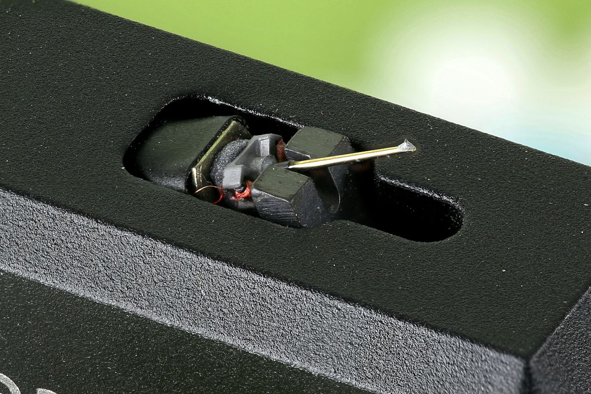Beim Stöbern im Produktportfolio von Clearaudio springt mir das Concept MC sofort ins Auge. Das liegt einerseits an seinem mit 690 Euro relativ günstigen Preis, vor allem aber daran, dass sich sein Gehäuse deutlich vom aktuellen Clearaudio- Design mit dem ebenso typischen wie auffälligen „Zahnkranz“ auf der Oberseite der großen MC-Modelle absetzt. Es erinnert von der äußeren Form her eher an japanische MCs aus Edelmanufakturen wie etwa Supex, Koetsu oder Shelter. Die fast schon strenge, quaderförmige „Old- School“-Gestalt des aus einer schwarz eloxierten Aluminium-Magnesium-Legierung gefertigten Systems wird einzig durch die angeschrägten Kanten und durch die beiden obenliegenden Ösen, in denen sich Gewinde für die Montage im Tonarm befinden, durchbrochen. Diese Gewinde und die rechtwinkligen Abmessungen sorgen dafür, dass die Justage des Clearaudios so einfach wie nur möglich vonstatten geht. Das geschlossene Gehäuse verhindert, dass allzu viel Staub in den Generator hineingelangt, über dessen technische Details übrigens nur sehr wenig in Erfahrung zu bringen war. Besonderes Augenmerk wird beim Concept MC laut Clearaudio auf eine möglichst hohe Kanalgleichheit gelegt. Der Generator weist mit 11 Ohm einen mittleren Wert für den Innenwiderstand auf und sollte dementsprechend – als Faustregel gilt hier Faktor 10 – mit etwa 100 Ohm oder mehr abgeschlossen werden. Weiterhin sollen Neodym-Eisen-Magnete zum Einsatz kommen. Insbesondere die Verwendung des Seltenerdmetalls Neodym bewirkt offenbar, dass die Ausgangsspannung mit 0,4 mV bei einer Schnelle von 5 cm/s erfreulich hoch ausfällt. Damit dürften auch einfache Phono-Vorverstärker locker zurechtkommen. Unter dem Mikroskop fällt auf, dass der zugelieferte Nadelträger – das System wird ansonsten komplett in Erlangen gefertigt – einen für diese Preisklasse unüblichen, konisch geformten Nadelträger aus Bor spendiert bekam. Die meisten Tonabnehmer unterhalb von 1000 Euro besitzen bis auf wenige Ausnahmen – spontan fällt mir nur das Nagaoka MP-500 ein – typischerweise Nadelträger aus Aluminium. Damit lassen sich selbstverständlich auch gute Resultate erzielen. Doch Bor (engl.: „boron“) hat von allen als Werkstoffe in Frage kommenden chemischen Elementen die geringste Dichte und nur eine geringfügig geringere Härte als Diamant, weswegen Bor(on) sich als Nadelträger in den oberen Klassen etabliert hat. Der Schliff des selbstverständlich nackten Diamanten ist eine Line-Contact-Variante, die hier unter dem Namen „Micro Line“ firmiert. Dabei soll es sich um einen etwas vereinfachten Schliff des von Clearaudio bei den teureren Modellen verwendeten HD-Diamanten handeln.