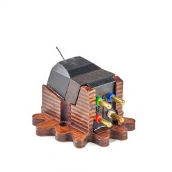 Dank farblicher Kodierung der vier Anschlüsse können auch Laien den Tonabnehmer einbauen. Die markanten „Finger“ des Tonabnehmer-Gehäuses sind ein Markenzeichen der höherwertigen Pickups aus Erlangen. Wie die meisten seiner Geschwister lässt sich der MC an nahezu allen Headshells befestigen.