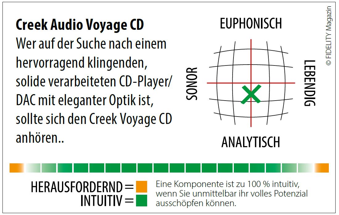 Wer auf der Suche nach einem hervorragend klingenden, solide verarbeiteten CD-Player/DAC mit eleganter Optik ist, sollte sich den Creek Voyage CD anhören.