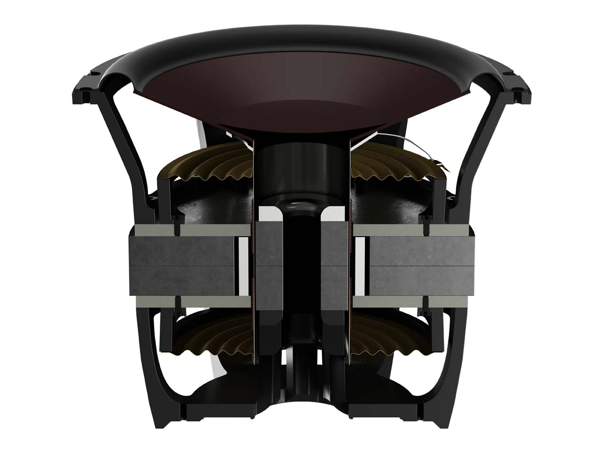 Dieser von Grund auf neu konzipierte 18 cm (7 Zoll) große Treiber gewährleistet eine außergewöhnlich natürliche Wärme und musikalische Kohärenz im wichtigen Mitteltonbereich. Zudem zeichnet er sich durch eine Reihe von technologischen Innovationen aus, darunter eine neu gestaltete Version von DALIs charakteristischer Holzfasermembran, Balanced Drive SMC mit einer kürzeren Schwingspule, ein leistungsstarker und kompakter Neodym-Magnet und eine besonders schmale und massearme Sicke.