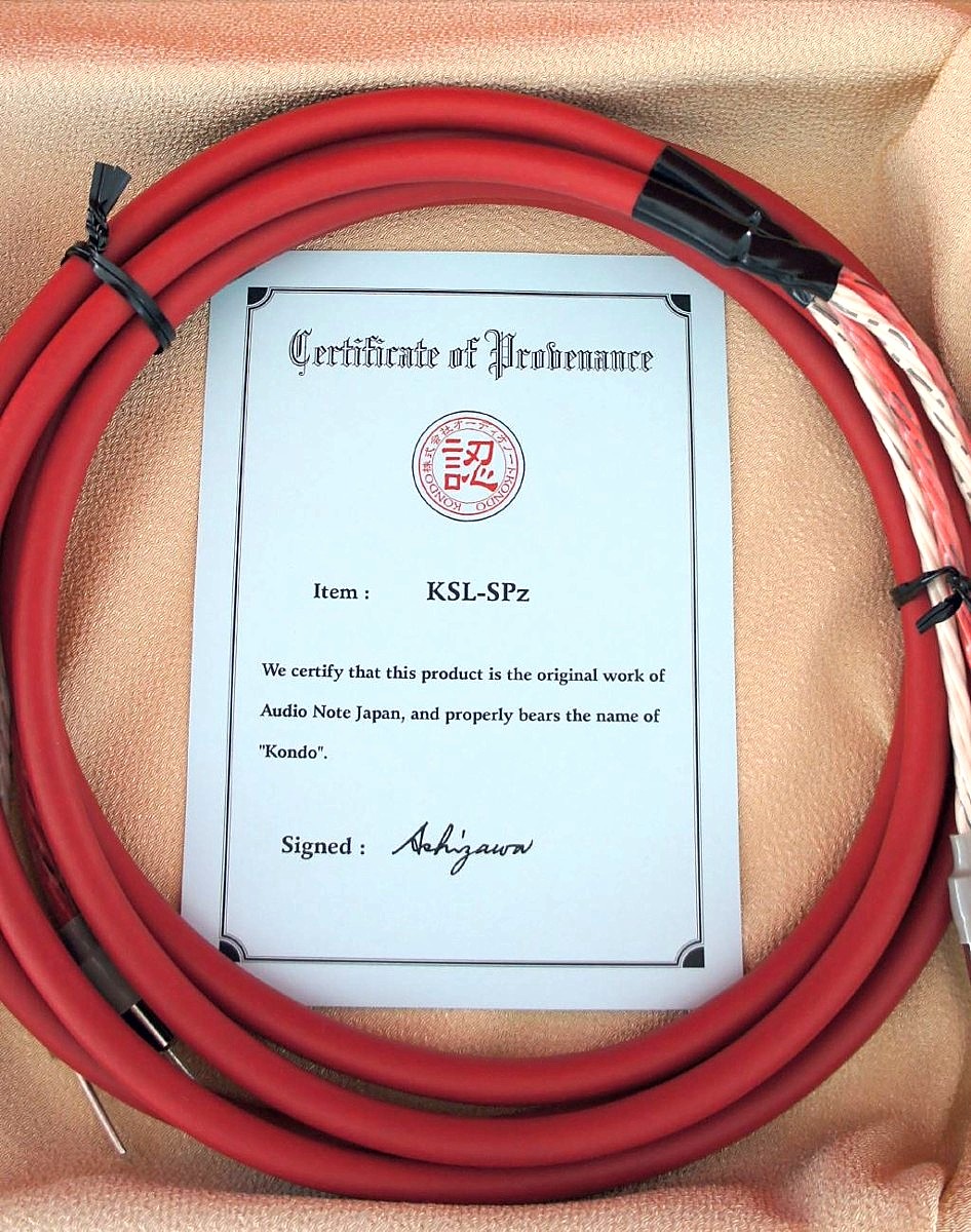 Doch zunächst einmal die Fakten. Kondo selbst gibt sie folgendermaßen an: „KSL LPz: Pure silver interconnect; 4 cores with braided shield, 0,1 x 52 x 2 (with silk windings); 0,15 x 20 x 2 (with silk windings), Audio Note RCA plug. KSL SPz: Pure silver, 8 cores with braided shield; 0,2 x 10 x 8, Audio Note pure silver pin“. Die Daten lassen erkennen, dass es sich hier nicht um ein einfaches Kabel von der Rolle eines Fremdanbieters handelt, dennoch sind die Angaben auch nicht völlig ungewöhnlich.