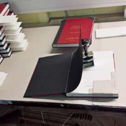 192 Seiten, ungestrichenes Kunstdruckpapier, Leineneinband mit Buchlederbezug, Goldprägung und Lesezeichenband