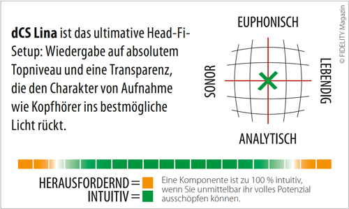 dCS Lina ist das ultimative Head-Fi-Setup: Wiedergabe auf absolutem Topniveau und eine Transparenz, die den Charakter von Aufnahme wie Kopfhörer ins bestmögliche Licht rückt.