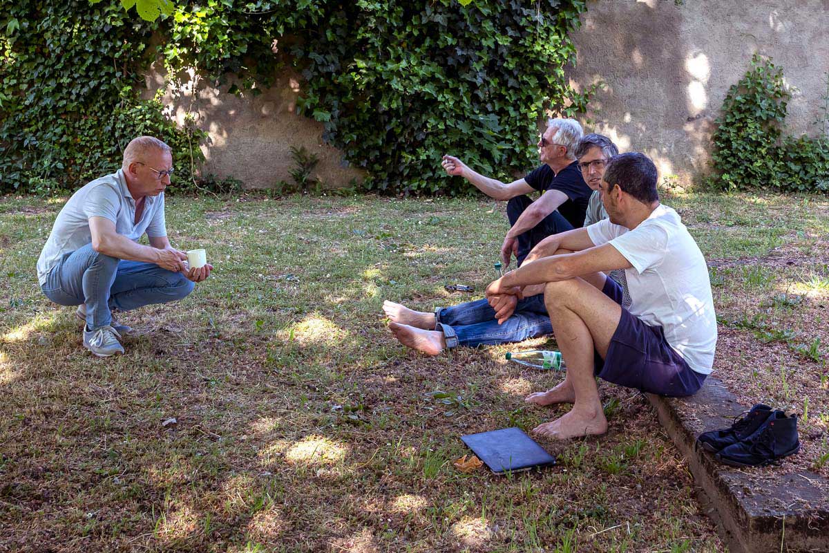 Geht dann doch mal etwas schief, haben die Gruppe und ihr Tonmann Dirk Sommer kein Problem damit, die betreffende Nummer neu zu starten und noch einmal einzuspielen. Am Tag zuvor wurde das Programm zudem schon einmal durchgespielt. Am Ende soll nur auf die Masterbänder kommen, was De-Phazz, dem „Sommelier du Son“ und dem Produzenten und Bandleader Pit Baumgartner zu 100 Prozent passt. Gesang ist bei dieser Produktion keiner dabei. In der Vergangenheit hatten profilierte Jazzsängerinnen wie Pat Appleton, Barbara Lahr oder Susan Horn das De-Phazz-Line-up komplettiert. Was in der Villa auf die Bänder kommt, ist dagegen ein reines Instrumental-Set, ergänzt lediglich um einige verzerrt klingende Sprachsamples, für die Joo Kraus zuständig ist. De-Phazz gehört zu jenen Bands, die sich immer wieder neu erfinden und deshalb in wechselnden Besetzungen auf die Bühne gehen.