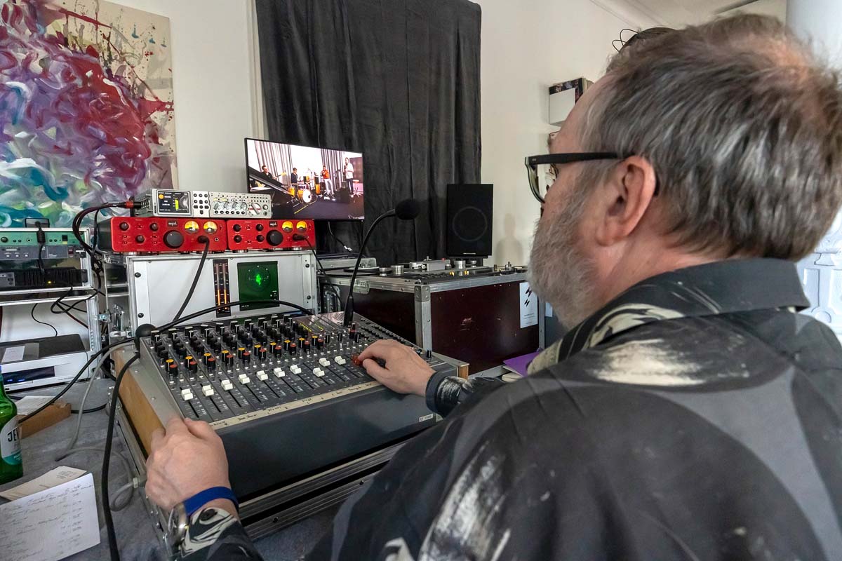 Unterdessen im Nebenraum: Dirk Sommer hat die technische Seite der Aufnahme bestens im Griff.