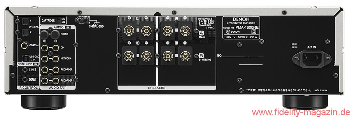 Als Zeichen der langjährigen Verpflichtung von Denon gegenüber allen Audio-Formaten, hat der PMA-1600NE für alle Schallplattenliebhaber einen Phonoentzerrer, der sowohl MM- als auch MC-Tonabnehmer unterstützt. Im Unterschied zum Vorgänger ist beim PMA-1600NE der Umschalter zwischen MM und MC kein Drucktaster mehr, sondern ein Relaisschalter. Dadurch können die Leiterbahnen auf der Platine verkürzt und Signalschleifen verkleinert werden. Filigrane analoge Signale werden mit größerer Reinheit verstärkt.
