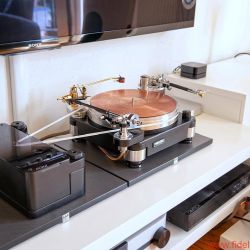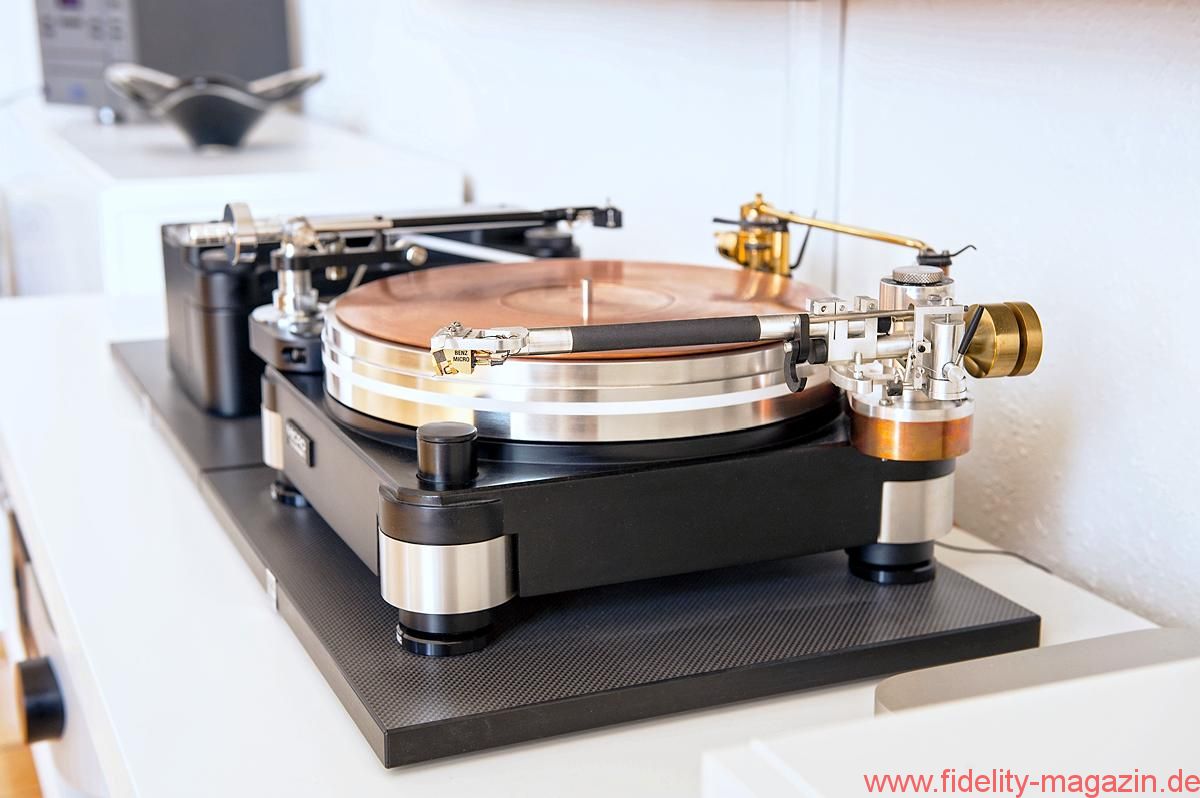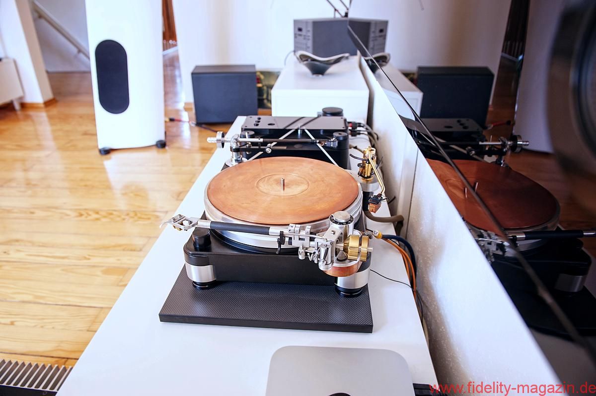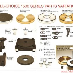 Etliche RX-1500 sind mit den besten und modernsten Tonarmen bestückt. Für die Montage sind Tonarmbasen der AX-Serie nötig, die über eine Spannschraube an das Chassis angeflanscht werden. Während Tonarmbasen nach SME-Standard oder mit Linn/Rega-Bohrung noch relativ leicht im Original zu finden sind, wird die Suche nach Modellen mit exotischen Montagebohrungen zunehmend schwierig. Aber mit etwas Geduld finden sich auch Nachbauten aus Aluminium, Messing oder Bronze, mit denen praktisch jeder Tonarm auf dem RX-1500 betrieben werden kann. Ich selbst habe derzeit übrigens drei Exemplare montiert: einen Wheaton Triplanar Mk IV (bestückt mit einem Benz Micro Glider SL), einen Mørch DP-6 (mit Benz H2O) und einen Micro Seiki CF-1 (mit Denon DL-103).