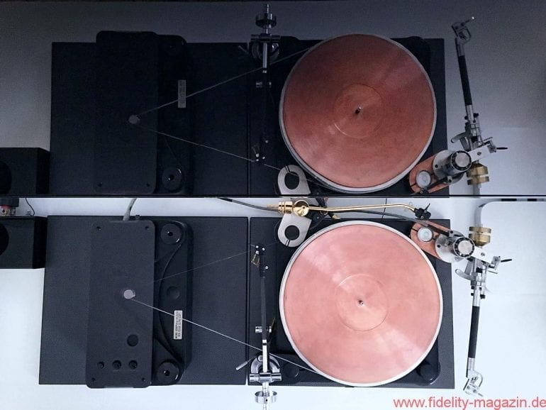 Der japanische Hersteller empfiehlt diese Antriebsart, da bei ihr – anders als bei Betrieb mit Gummiriemen – keine Längsschwingungen auftreten, die den Gleichlauf des Laufwerks nachteilig beeinflussen können. Tatsächlich wirkt das Klangbild mit dem nicht elastischen String deutlich klarer und direkter als mit Gummiriemen. Ein K-5-String besteht übrigens aus 134 einzelnen Aramid-Fasern und ist heute im Original nur sehr schwer zu bekommen. Aber nicht nur wegen der String-Knappheit lohnen sich eigene Experimente mit unterschiedlichen Nähgarnen oder auch dem von mir favorisierten Vorlaufband.