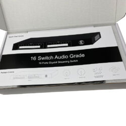 Der 16Switch wird außerdem mit Rack-Halterungen und Schrauben geliefert, um die Montage in einem 19-Zoll-Rack (1 HE Höhe) zu ermöglichen. Er kann wahlweise auf der Vorder- oder der Hinterseite montiert werden. Ein EMI-Absorber am inneren unteren Gehäuse reduziert elektromagnetische Störungen des digitalen Schaltkreis.