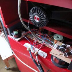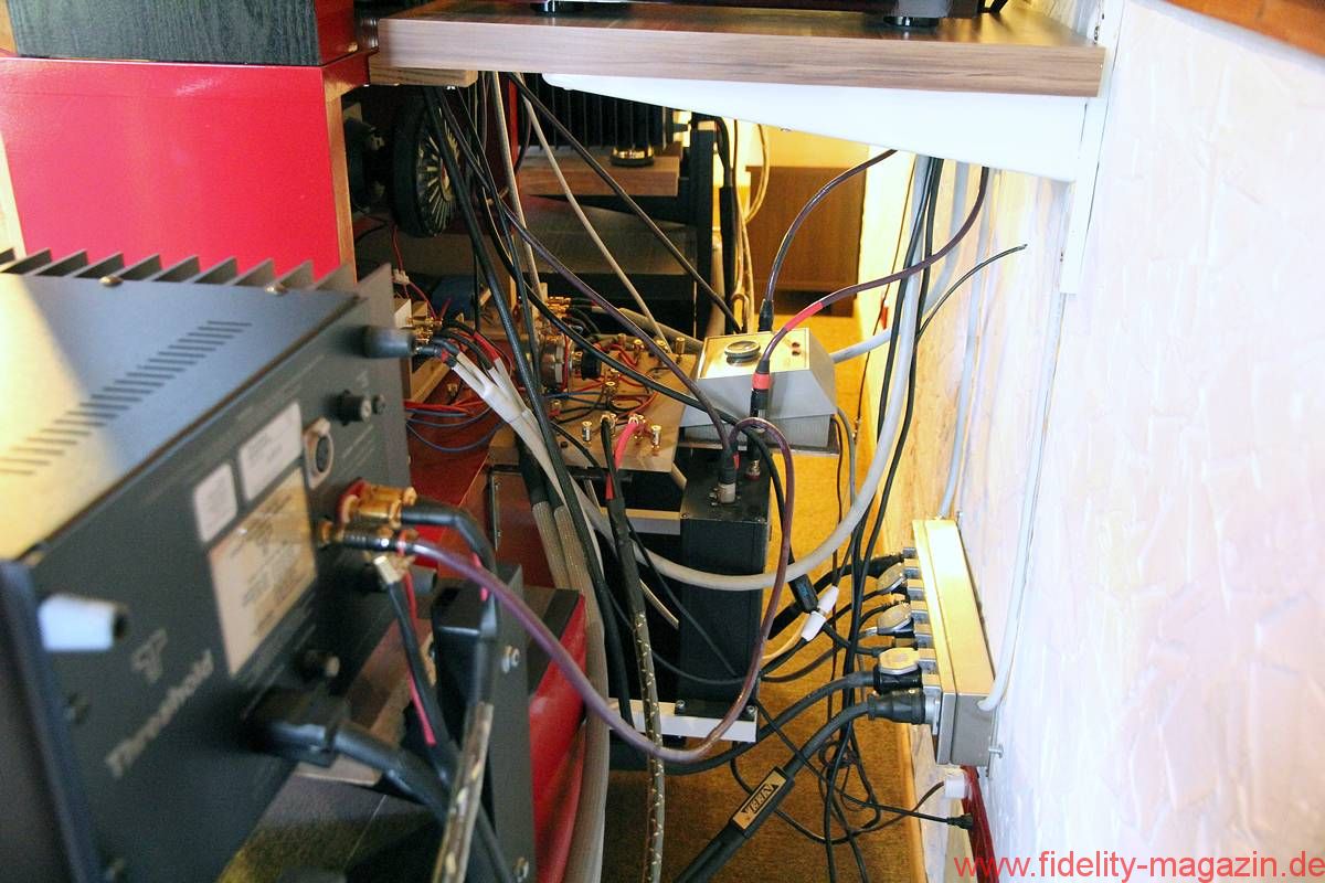In früheren Zeiten, als die Sendequalität im Allgemeinen höher war, hat er noch viel per Bandmaschine mitgeschnitten, im Moment wird leider nur Standardprogramm gesendet. Gleichwohl besitzt schon der „normale“ Radioklang dieser Anlage einen enorm hohen Wohlfühlfaktor, wirkt groß und mächtig und nicht die Spur scharf. Am sonoren Klangerlebnis sind wohl auch die zahlreichen Lautsprecher nicht ganz unschuldig. Die hier realisierte analoge Matrix-Verschaltung nach William B. Snow, die aus einem Stereosignal nicht nur einen unterstützenden Mono-Mittenkanal generiert, sondern die Stereobasis trickreich mit zusätzlichen Lautsprechern stabilisiert, erzeugt einen räumlichen Eindruck, der auch weit außerhalb des Sweetspots mühelos funktioniert. Zudem fügen sich auch die beiden mächtigen Subwoofer nahtlos ins Geschehen ein und erhöhen den räumlichen Eindruck. Es klingt „nach guter alter Art“ überwältigend!