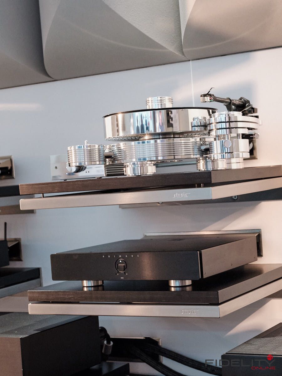 Was ist das nur? Ich schweife ständig ab in die Welt der Nullen und Einsen. Liegt vielleicht daran, dass das Analog-Angebot inzwischen schier unüberschaubar scheint. Allein die Zahl der bei Transrotor ausgestellten, allesamt höchst appetitlichen Modelle übersteigt mein Merkvermögen, obwohl sich an der klaren Struktur des Räke-Programms mancher andere Hersteller eine Scheibe abschneiden könnte. Zurück bei Sieveking entdecke ich Thomas Woschnicks reizvoll rabenschwarze Laufwerke, die passenderweise auf den Namen Raven hören und vor allem im Bass ihrer Farbe alle Ehre machen.