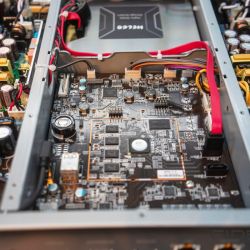 Einen ähnlichen Weg schlägt Melcos N1Z H60/2 ein; zwar steht keine eigene Rippingmöglichkeit zur Verfügung, aber eine Festplattenkapazität von 6 TB sorgt für eine gewaltige interne Musikbibliothek, die dann in allen bislang möglichen Formaten und Samplingraten reproduziert werden kann. Eine interessante Beobachtung auf der HighEnd 2019 war im digitalen Bereich freilich die Rückkehr der Klangregelung. Waren über lange Jahre die Möglichkeiten der kleinen Drehknöpfe am Verstärker verpönt, so besinnen sich mittlerweile Entwickler wie Daniel Weiss auf PlugIns in der Wandlersektion, die auf verschiedene Weisen in die Soundsignatur eingreifen können, vom Crossfeed beim Kopfhörerausgang bis hin zu Loudness- und Analogeffekten, alles per App zu steuern.