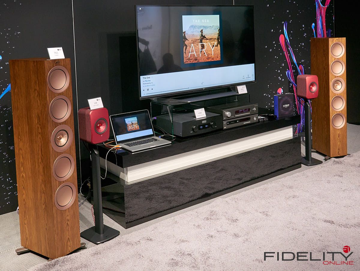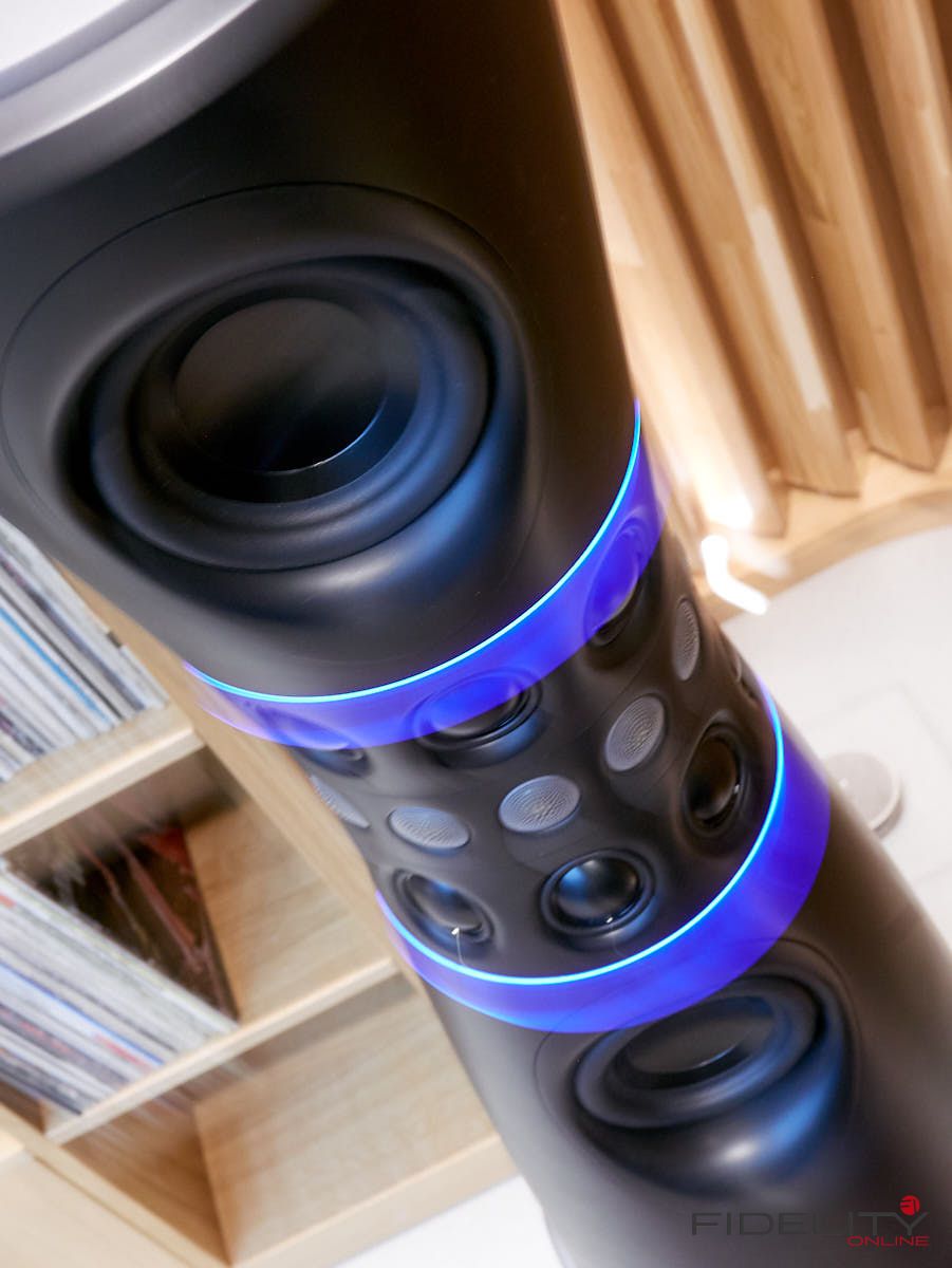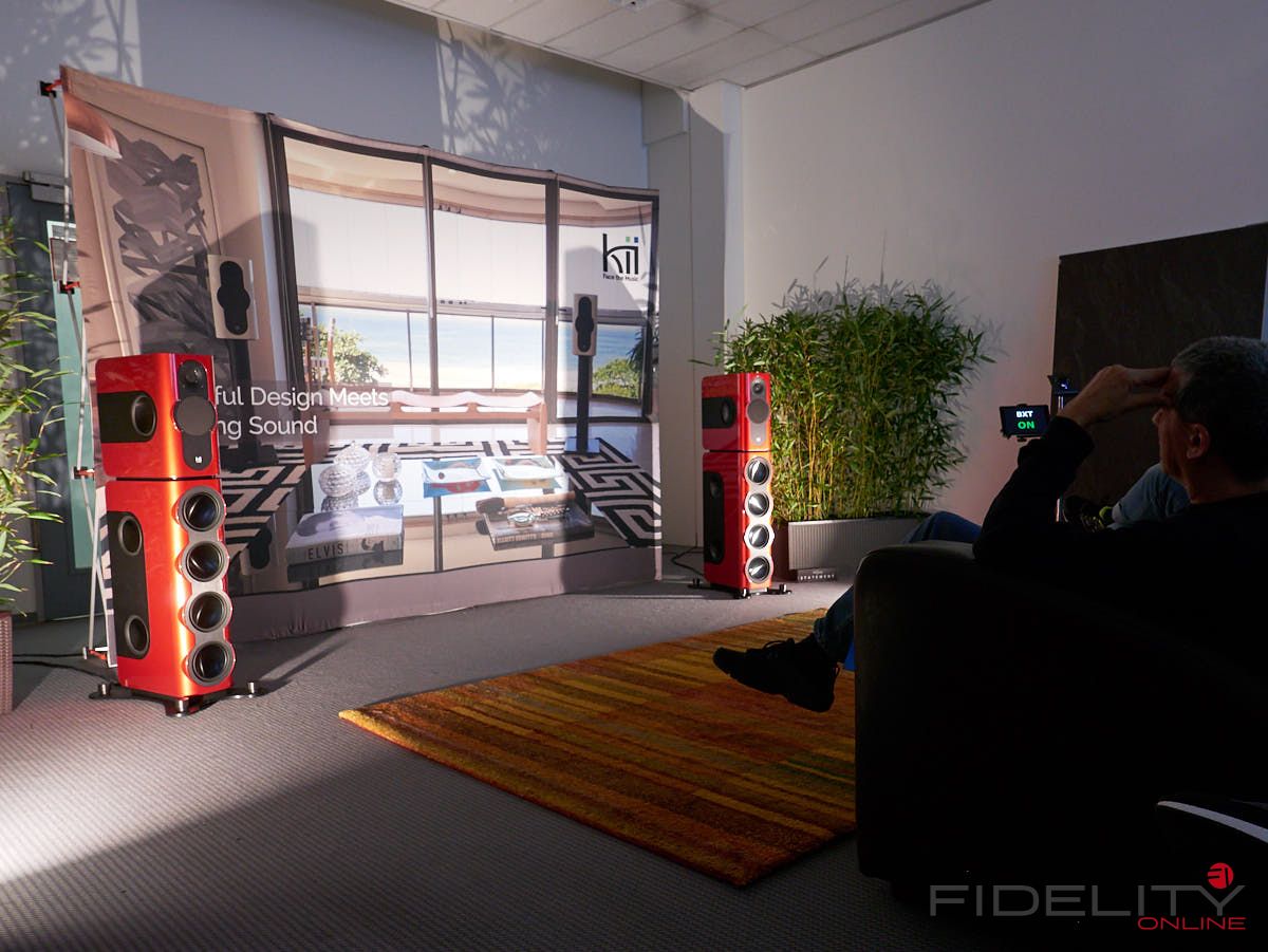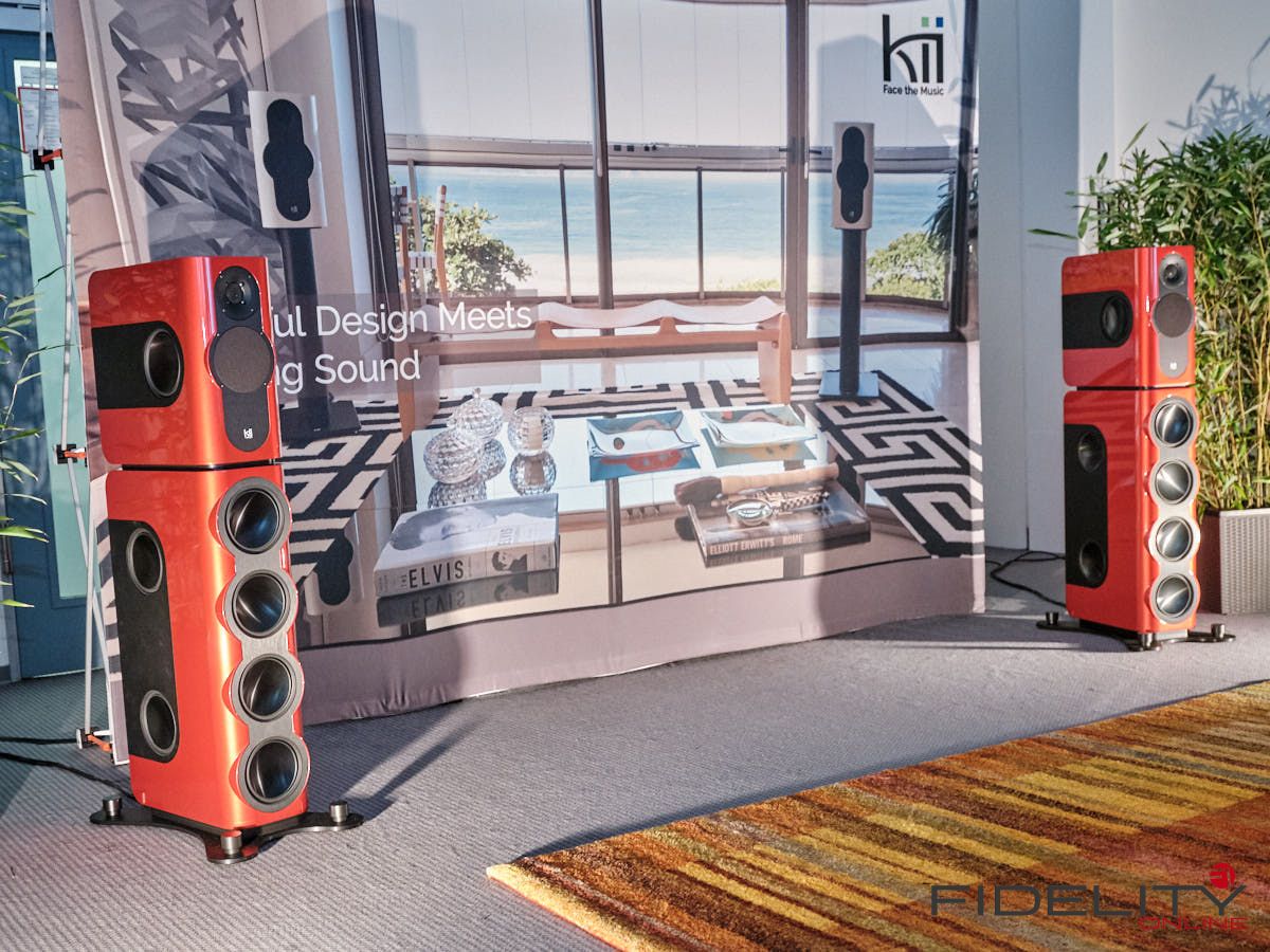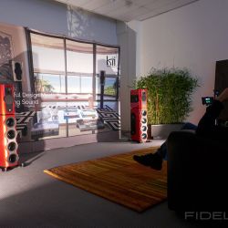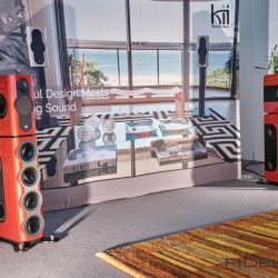 Ebenfalls aktiv sind die Lautsprecher von Kii Audio. Hochdynamische Systeme, garniert mit einem fetten Schuss Technologie. Im Gespräch mit Chris Reichardt merkt man schnell, das Kii aus der professionellen Anwendungen kommt und der Hersteller auch keine Angst vor Technologie hat. Kii hat es verstanden, dass der Weg zum überragenden Klang weit über einen linearen Frequenzgang hinausgeht und ebenfalls im definierten Abstrahlverhalten zu finden ist. Hierbei spielt das Verhältnis von Direktschall zu Indirektschall eine wichtige Rolle. Ideal ist es, wenn am Hörplatz möglichst viel Direktschall und wenig Indirektschall (also Raumreflexionen) ankommt. Das kann durch eine gerichtete Abstrahlung mittels Waveguides oder Hörner geschehen. Vergleichbares kann auch durch aufwendige Raumakustik erzielt werden. Das Grundproblem bleibt aber: Tiefe Frequenzen lassen sich aufgrund ihrer Wellenlänge bzw. räumlichen Ausdehnung nicht ohne weiteres „lenken“. Hier kommt Kii’s Ansatz ins Spiel: Der Hersteller realisiert mit einer Vielzahl von Lautsprechern an der Front, den Seiten und der Rückseite seiner Gehäuse ein effizientes „Cardioid-System“. Der Effekt: Auch tiefe Töne werden nun weitestgehend gerichtet abgestrahlt. Das ist mit keinem anderen Aktivlautsprecher in dieser Effizienz zu erreichen und blendet den Raum praktisch aus. Wie klingt’s? Fantastisch direkt, so als würde in den vorderen Reihen eines Konzerts sitzen und alles ohne Artefakte mitbekommen.
