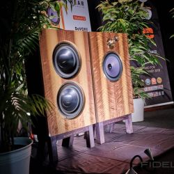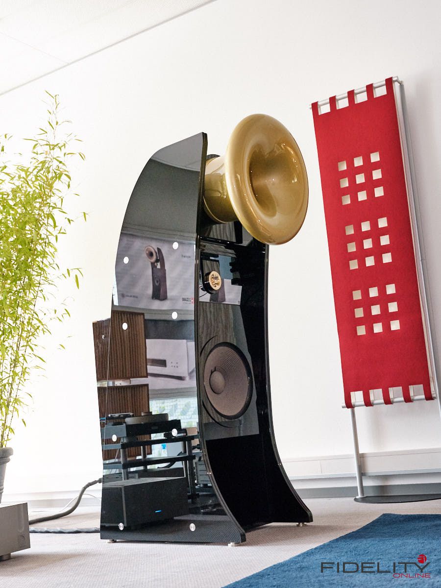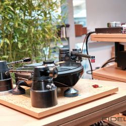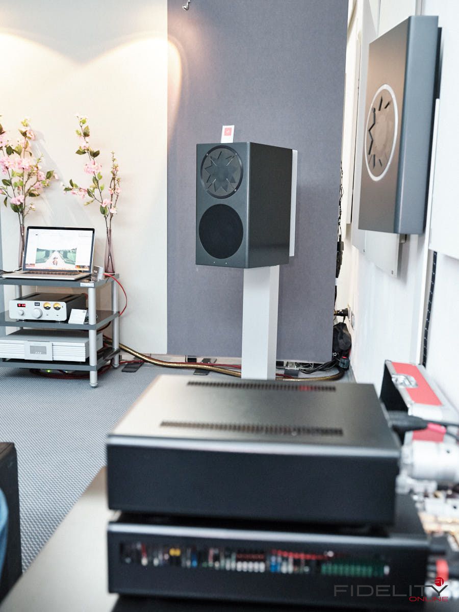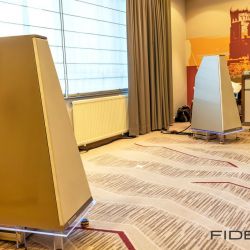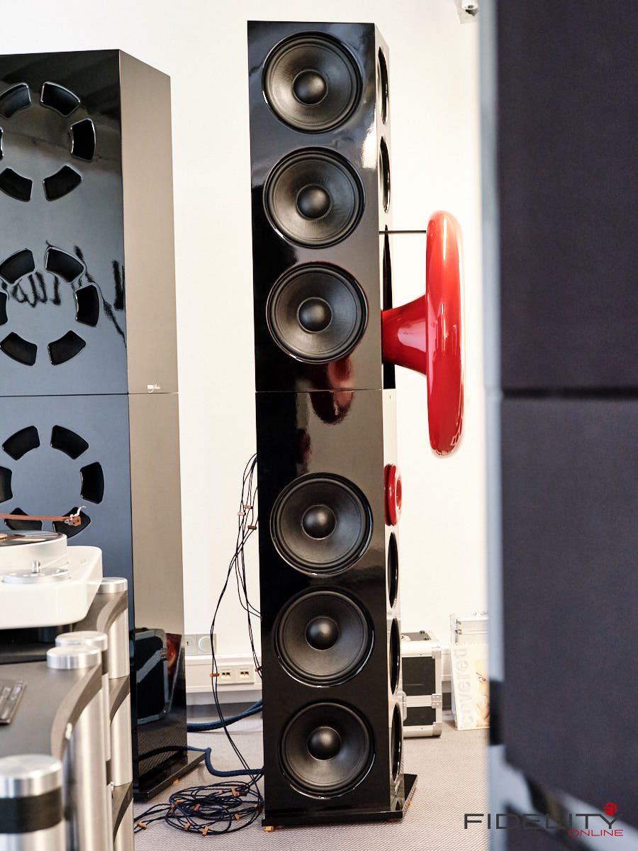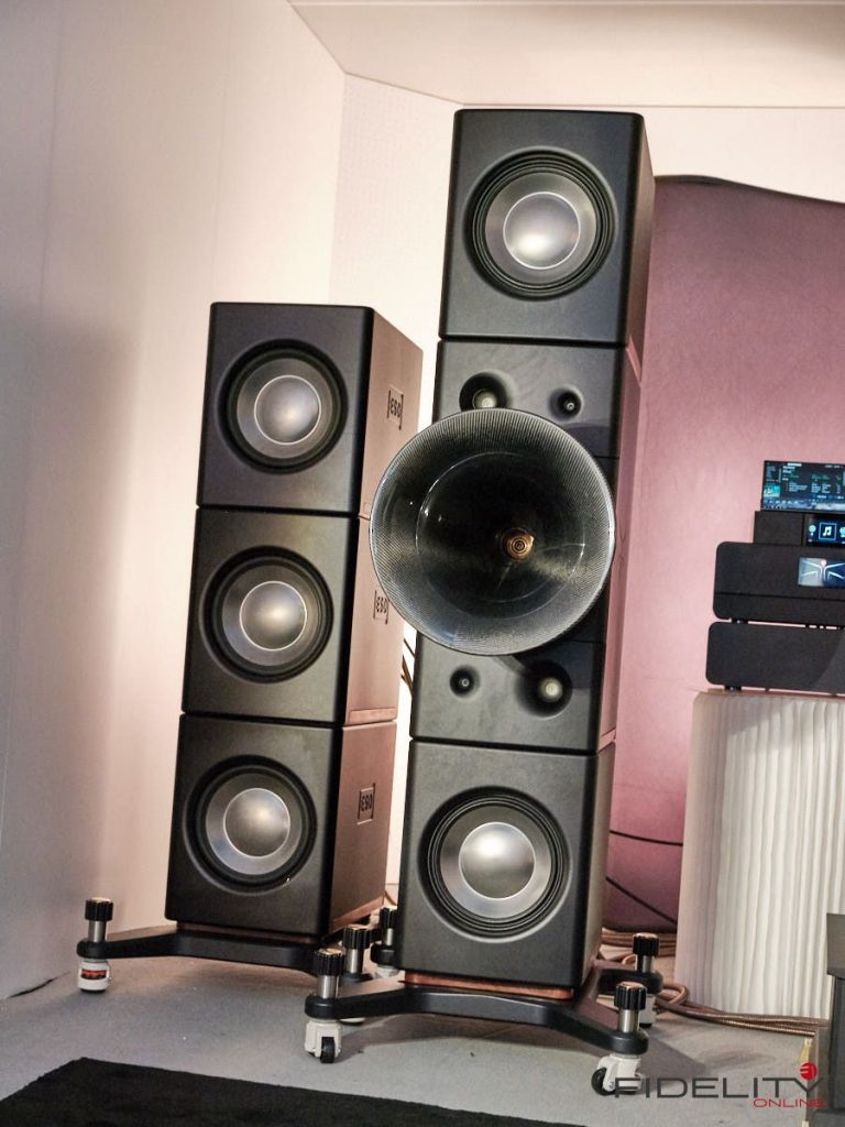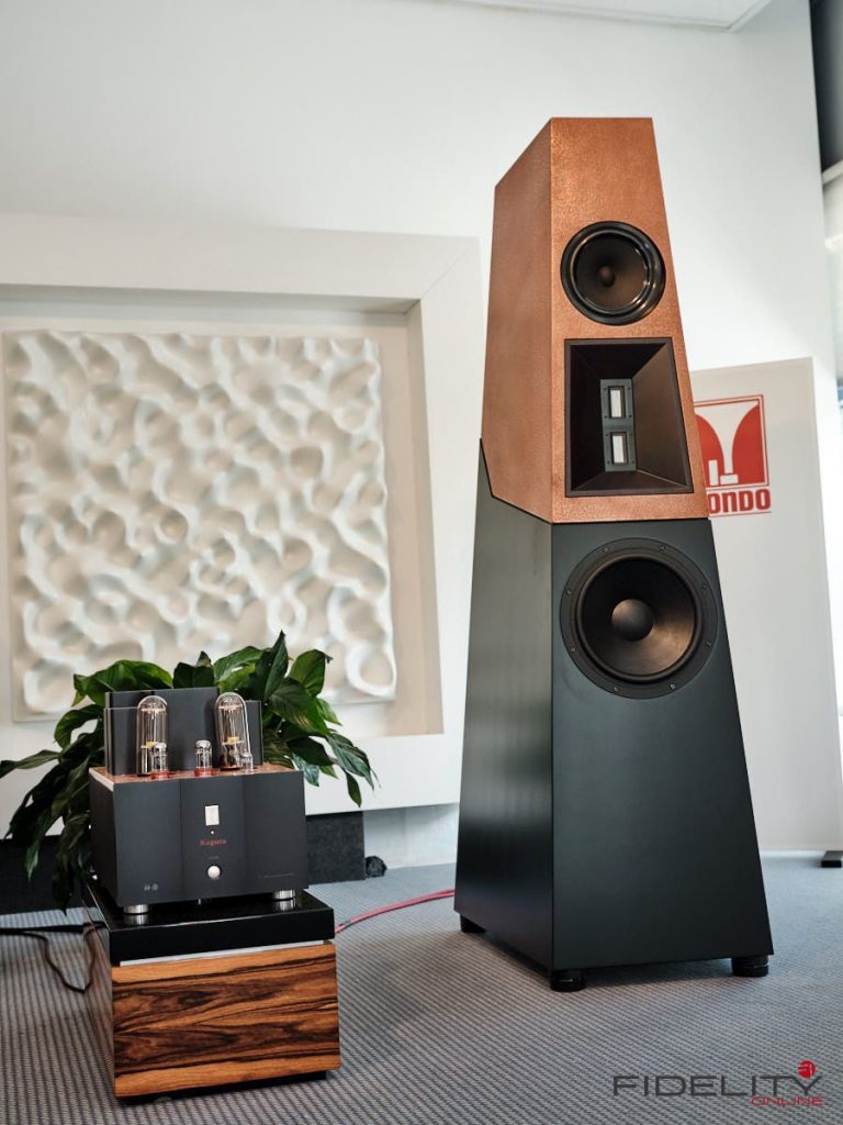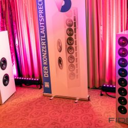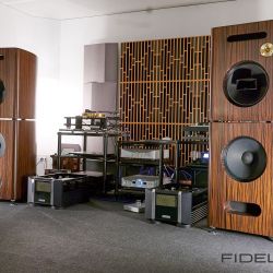 Rainer Weber von Kawero! war mit der neuen Grande angereist, einem ausgewachsenen Vierweg-Lautsprecher, der neben einem 15-Zoll- und einem 12-Zoll-Basstreiber mit einem Ellipticor-Chassis und einer doppelten RAAL-Bändchen aufwarten konnte. Die beiden Bändchen arbeiten auf ein gemeinsames Horn und sind für eine kotrollierte Abstrahlung räumlich gegeneinander versetzt. Das alles „hing“ an einer kompletten Kondo Kette und war … – umwerfend, nach allen Maßstäben! Mehr muss nicht gesagt werden.