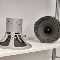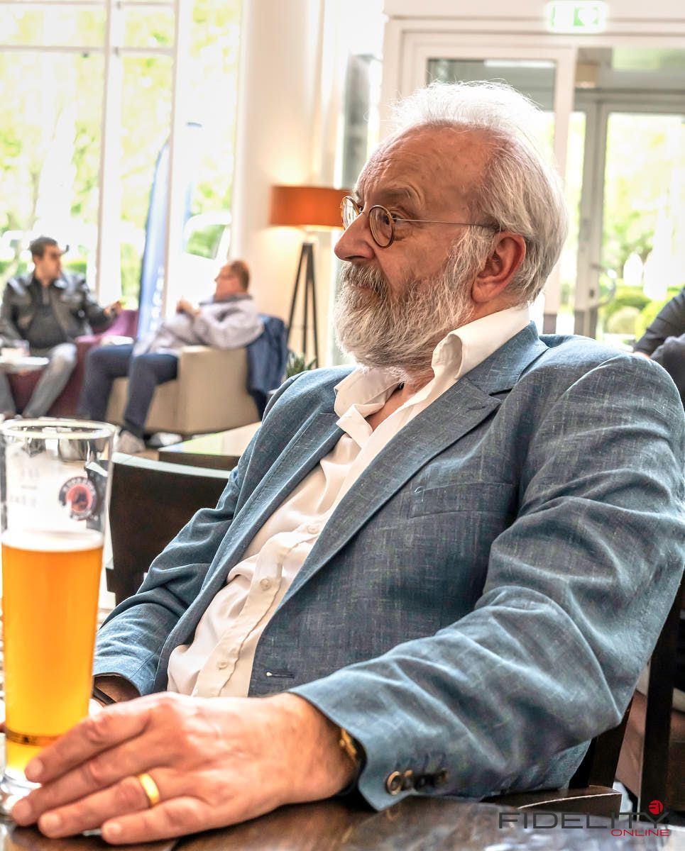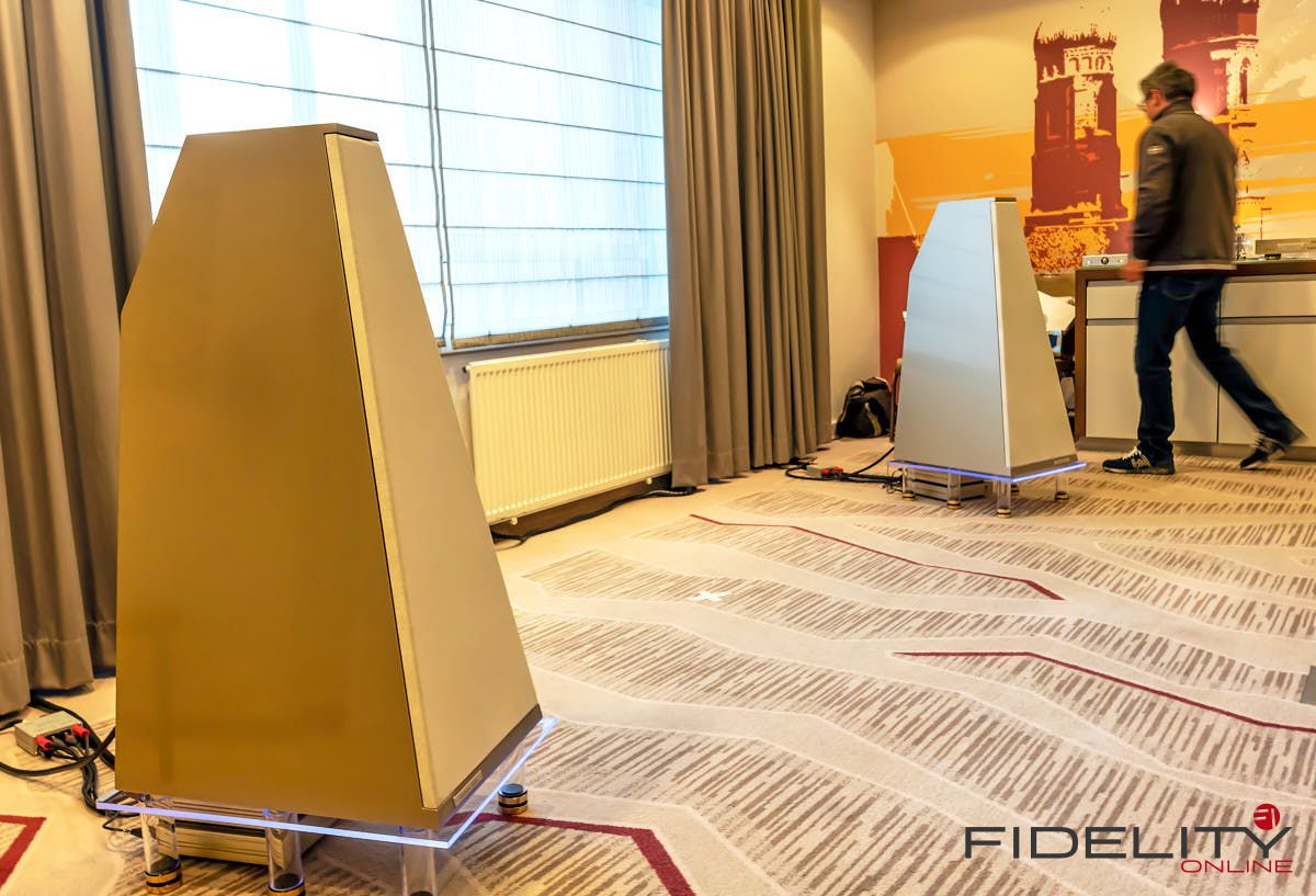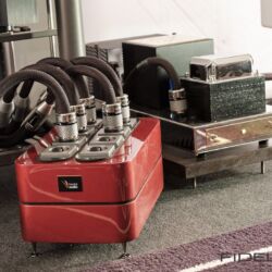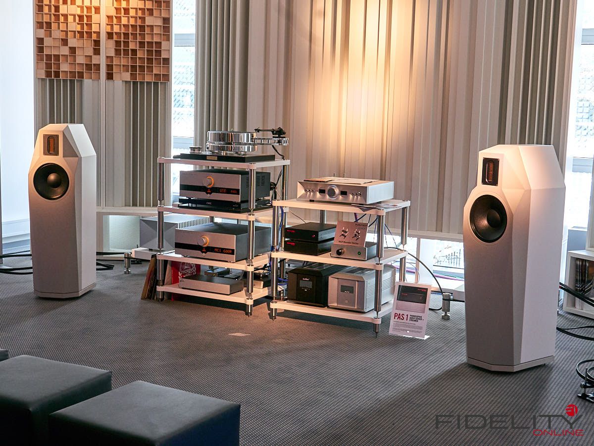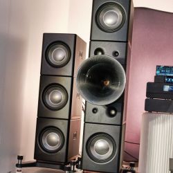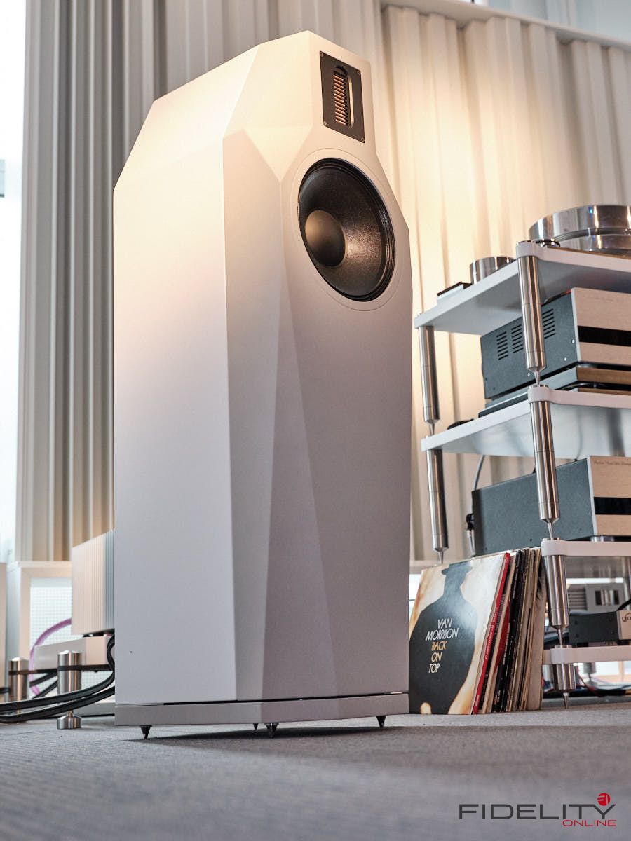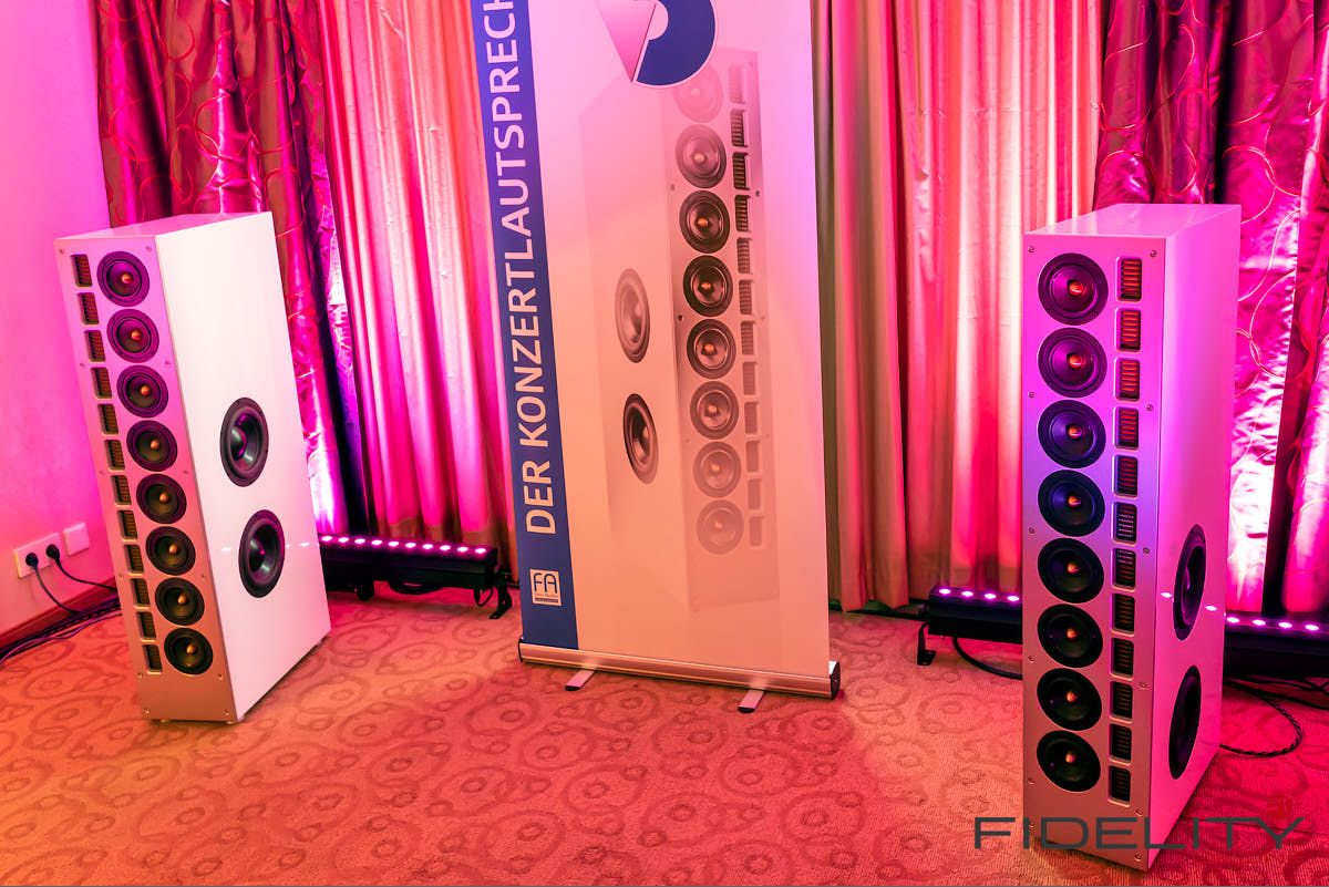 Rainer Weber von Kawero! war mit der neuen Grande angereist, einem ausgewachsenen Vierweg-Lautsprecher, der neben einem 15-Zoll- und einem 12-Zoll-Basstreiber mit einem Ellipticor-Chassis und einer doppelten RAAL-Bändchen aufwarten konnte. Die beiden Bändchen arbeiten auf ein gemeinsames Horn und sind für eine kotrollierte Abstrahlung räumlich gegeneinander versetzt. Das alles „hing“ an einer kompletten Kondo Kette und war … – umwerfend, nach allen Maßstäben! Mehr muss nicht gesagt werden.