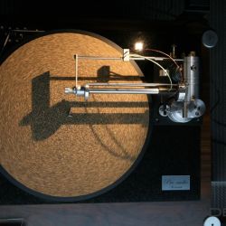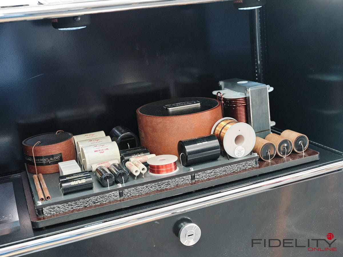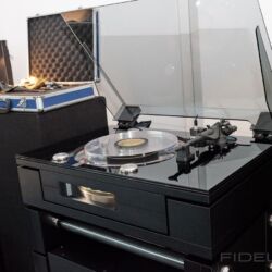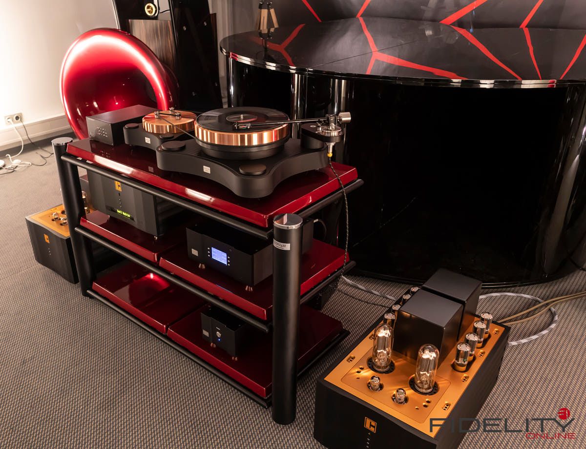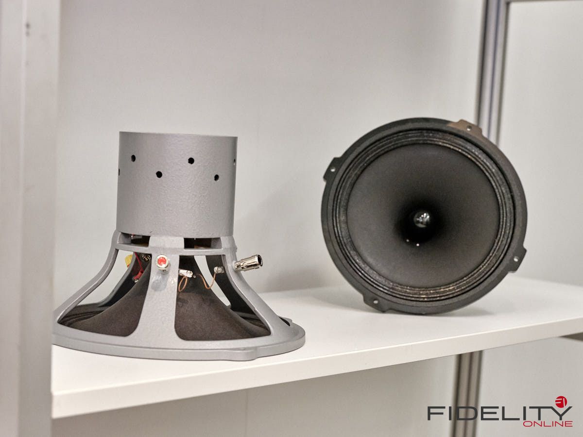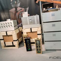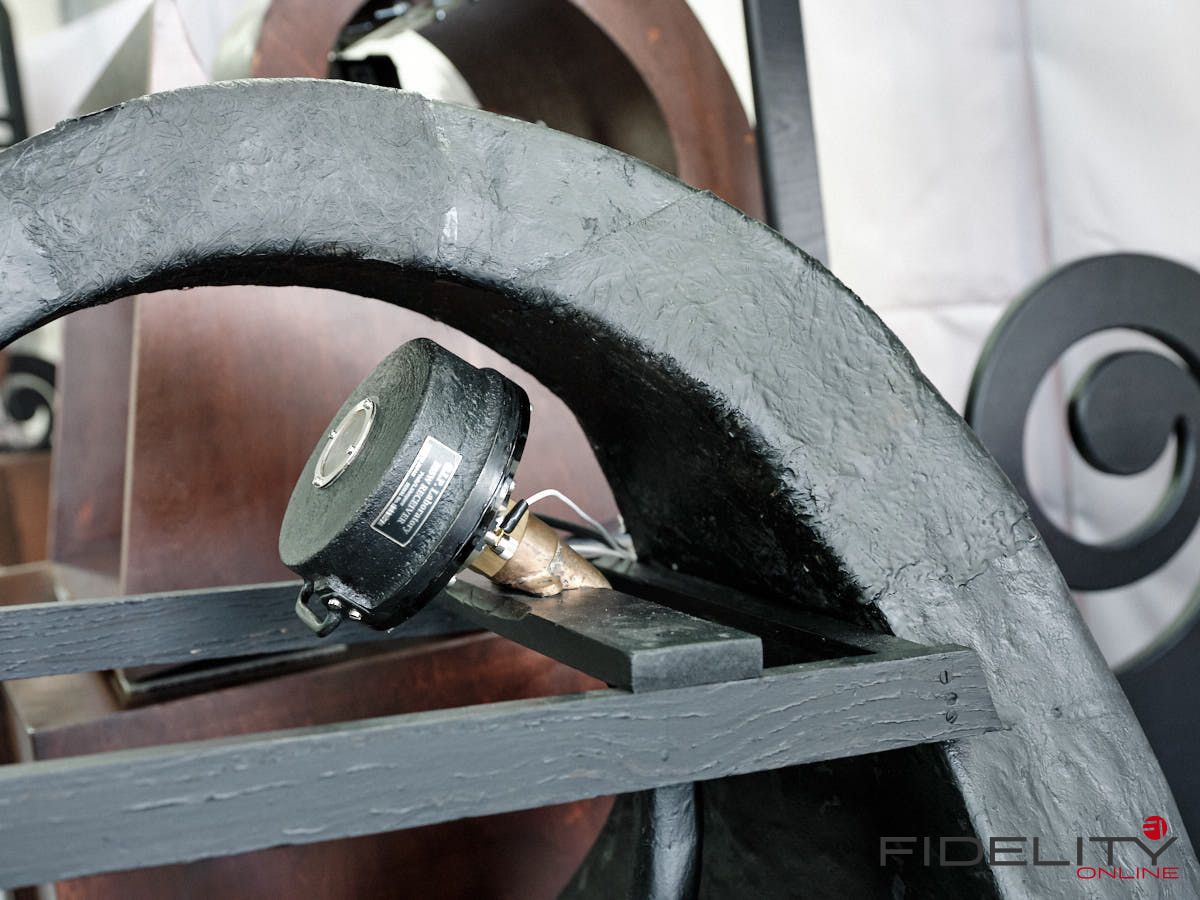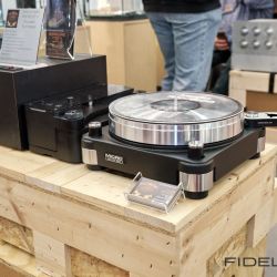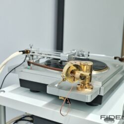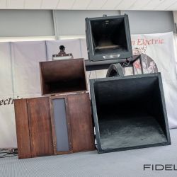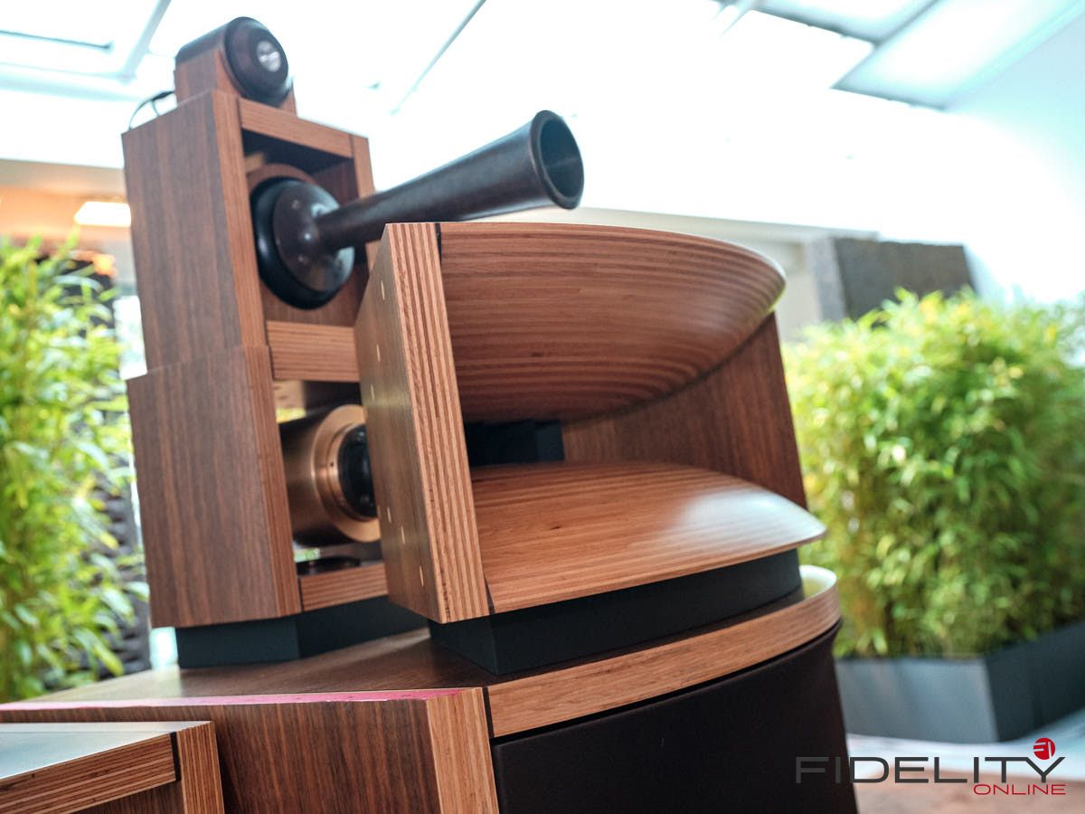 Rainer Weber von Kawero! war mit der neuen Grande angereist, einem ausgewachsenen Vierweg-Lautsprecher, der neben einem 15-Zoll- und einem 12-Zoll-Basstreiber mit einem Ellipticor-Chassis und einer doppelten RAAL-Bändchen aufwarten konnte. Die beiden Bändchen arbeiten auf ein gemeinsames Horn und sind für eine kotrollierte Abstrahlung räumlich gegeneinander versetzt. Das alles „hing“ an einer kompletten Kondo Kette und war … – umwerfend, nach allen Maßstäben! Mehr muss nicht gesagt werden.
