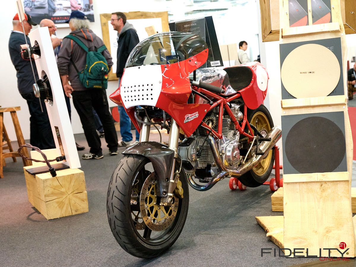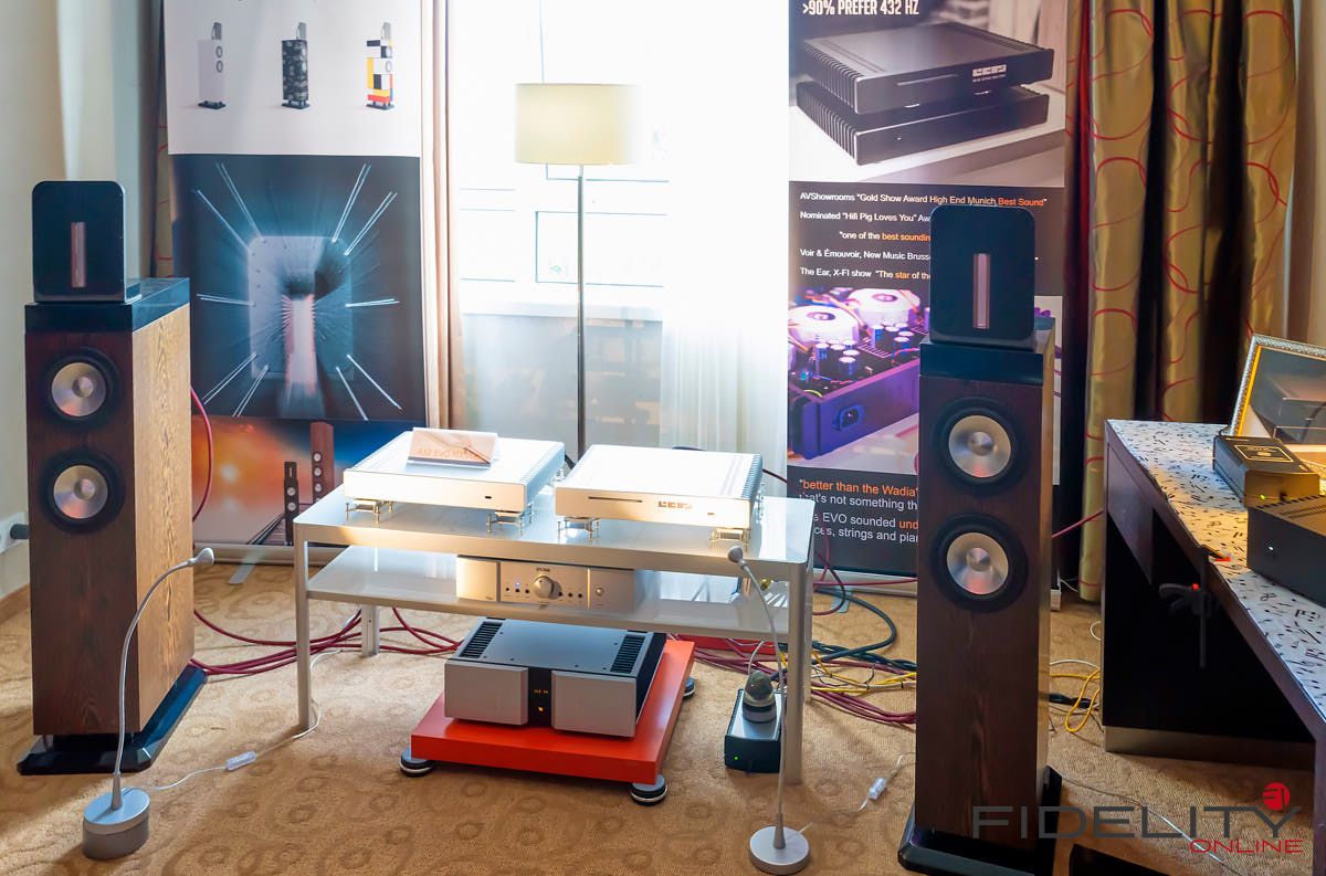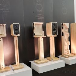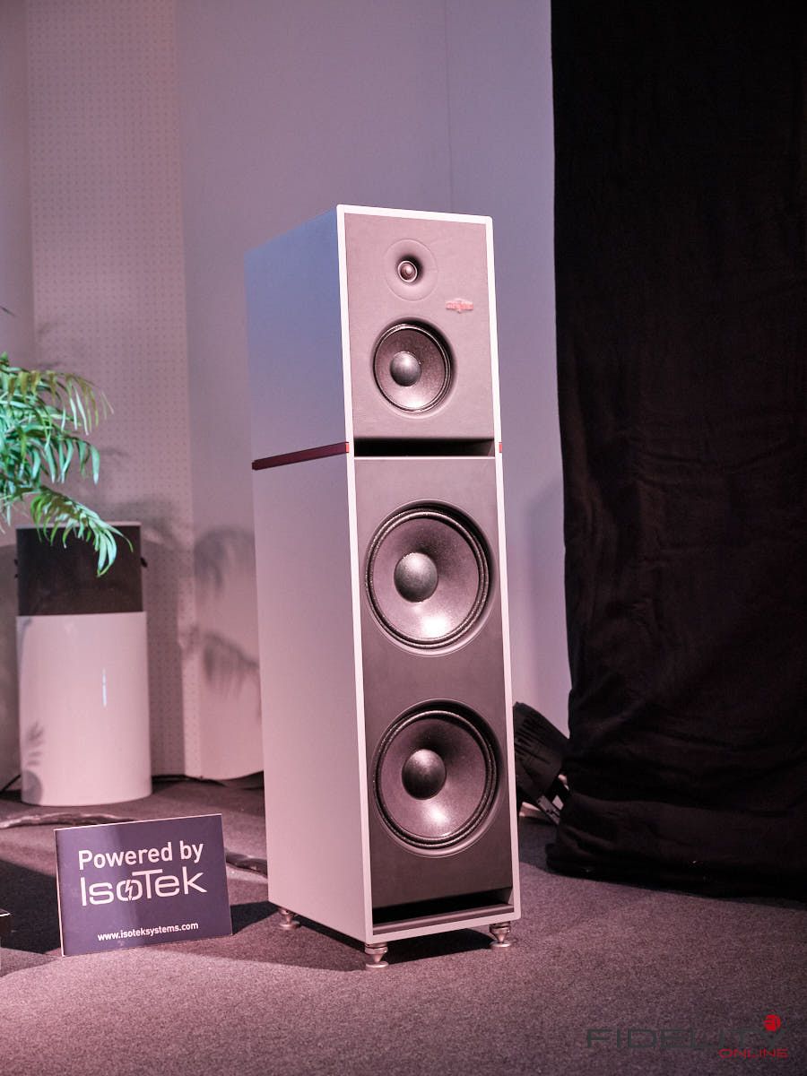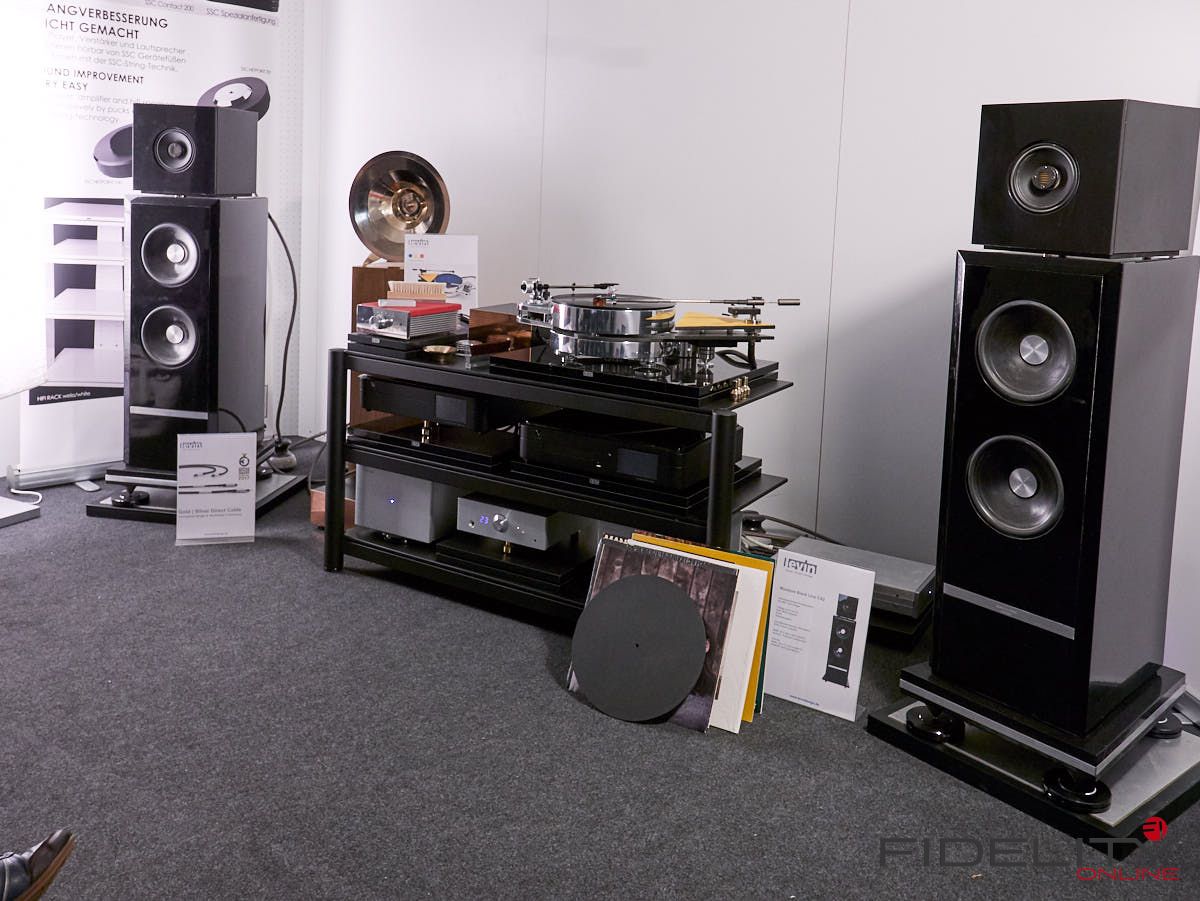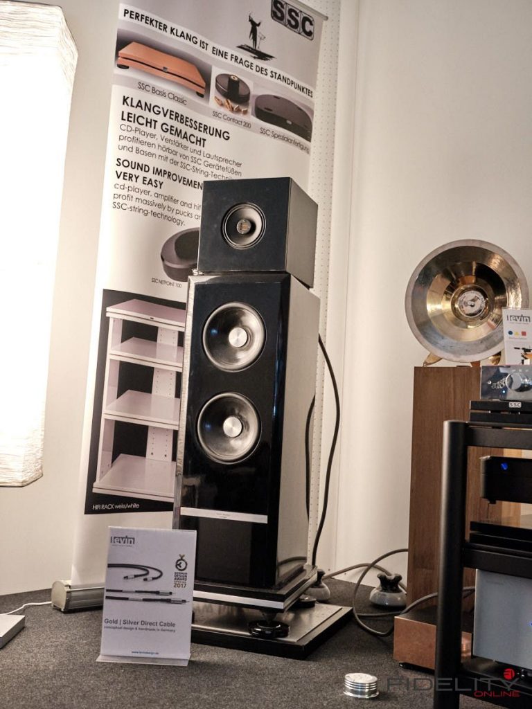Das Gegenteil von Übermannsgroß gab es in der Kabine von Levin Design zu belauschen. Ein Lautsprecher namens CA2pac (erinnert mich irgendwie an den Roboter C3PO aus Star Wars). Wohnraumfreundlich in den Abmessungen mit einer Koaxialen Mittel- Hochtoneinheit um einen kleinen AMT und einer Basseinheit mit 2 Basslautsprechern. Wir habe diesen Lautsprecher bereits einige Male gehört und er weiß immer wieder zu überzeugen.