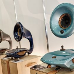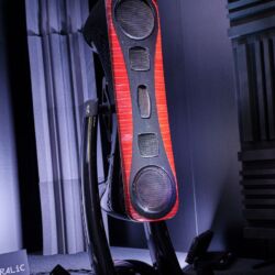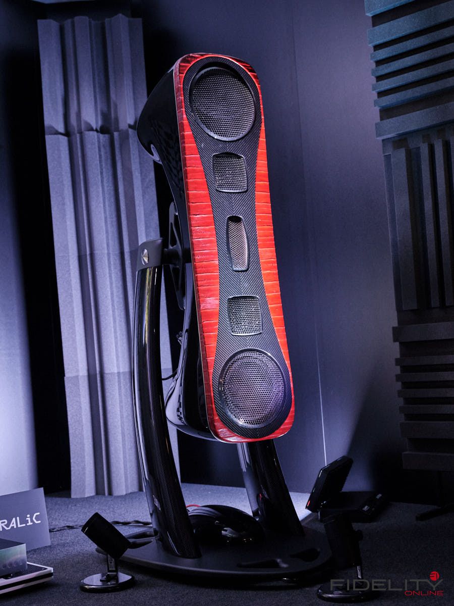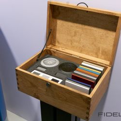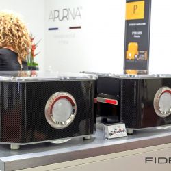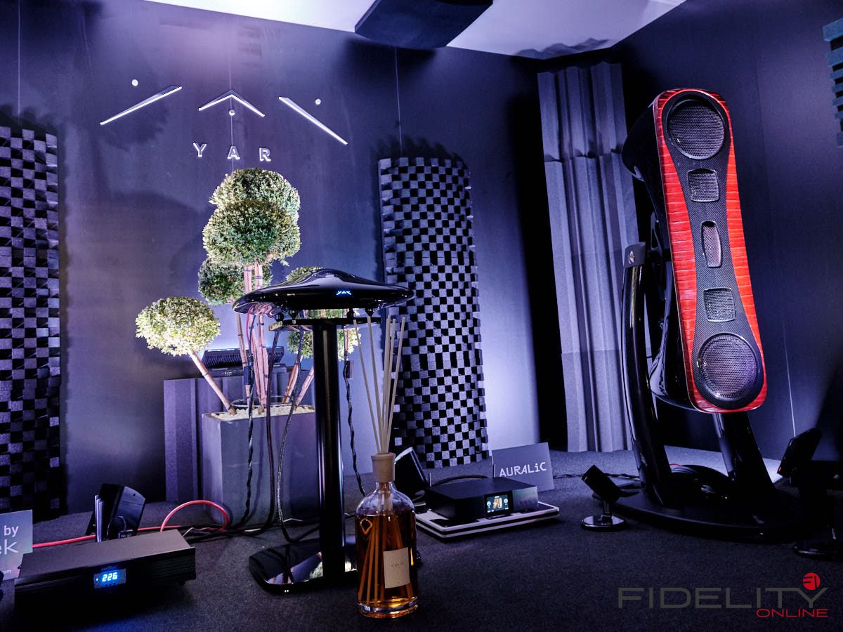 Eine weitere Überraschung war für uns YAR Audio aus Turin in Italien. Ein Name, den wir bis dahin nicht wahrgenommen hatten. YAR hatte ein komplett eigenes System, bestehend aus Lautsprecher und einem hybriden Röhren-, Transistorverstärker in der Vorführung. Erschwerend für eine perfekte Vorführung war sicher der Vorführcontainer im Erdgeschoss – sollte man meinen. Der YAR Kette machte das aber überhaupt nichts aus. Dreidimensional, entspannt, ja geradezu lustvoll war die Darbietung, so lustvoll das man sich fragt: „Wie machen die das“? Hier hielt sich YAR aber vornehm zurück! Es wurde immer die Carbon-Bauweise in Verbindung mit edelstem Leder und exotischen Hölzer in den Vordergrund geschoben. Zum technischen Konzept hielt man sich bedeckt. Da versuchen wir dran zu bleibe.