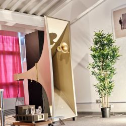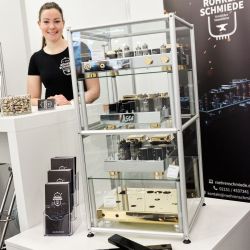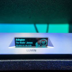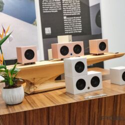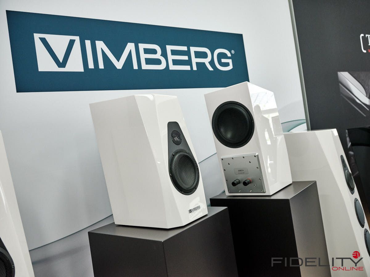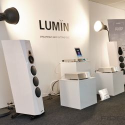 Wiederum ganz anders kam der Vorführraum von Lumin daher. Die Streaming-Spezialisten nahmen mit ihrer neu vorgestellten Endstufe „AMP“ einen Lautsprecher von Vimberg in die Zange. Vimberg, eine Marke aus dem Hause TIDAL, verblüfft nicht nur durch seine optische Nähe zu den Überluxus-Produkten der Stammmarke, sondern vor allem auch durch die akustische Nähe zu ihnen. Und das alles zu einem Preis, der deutlich unterhalb von TIDAL angesetzt ist. Oben im Atrium, am Stand von Vimberg/TIDAL, gab es auch einen neuen kleinen Zweiwege Lautsprecher namens Amea zu bestaunen, der das Vimberg-Portfolio künftig nach unten abrundet.