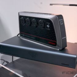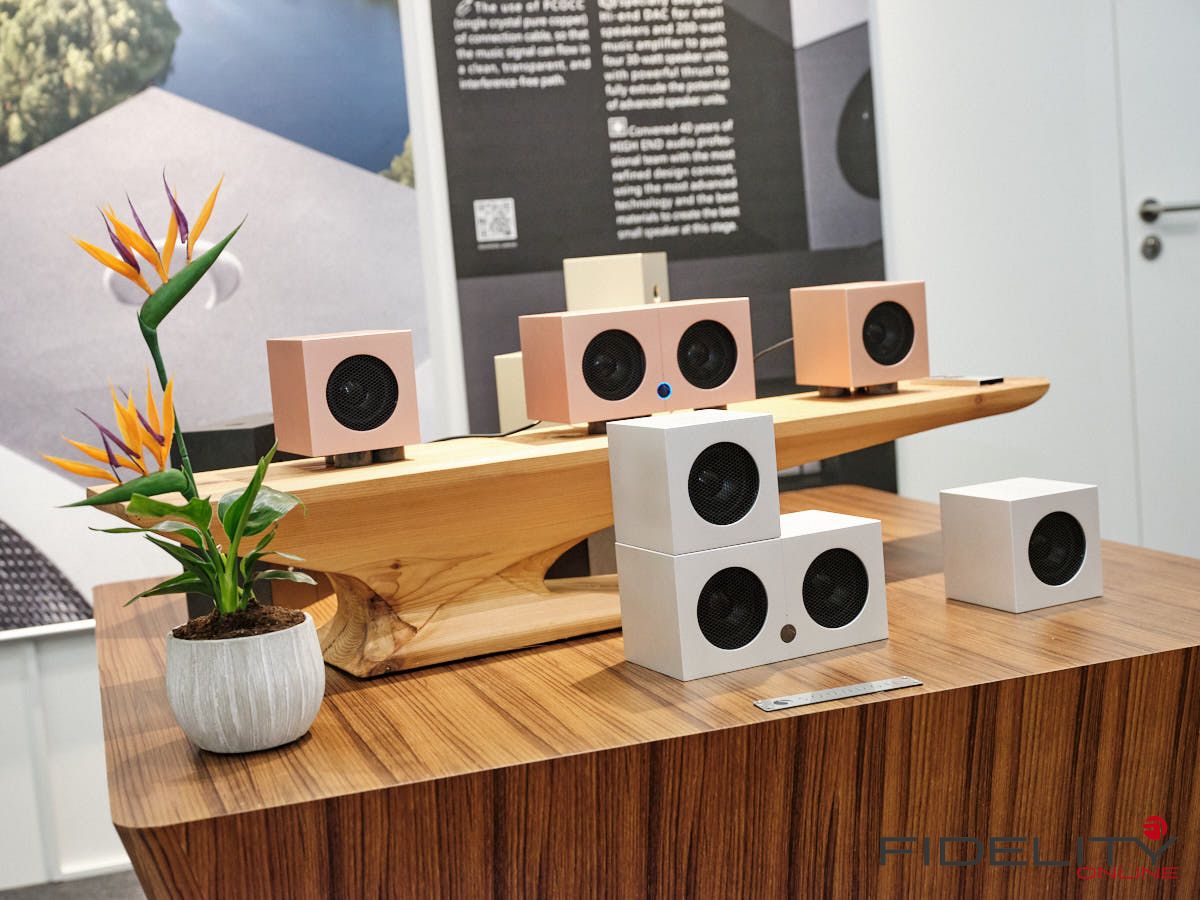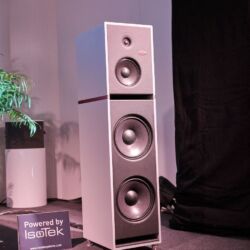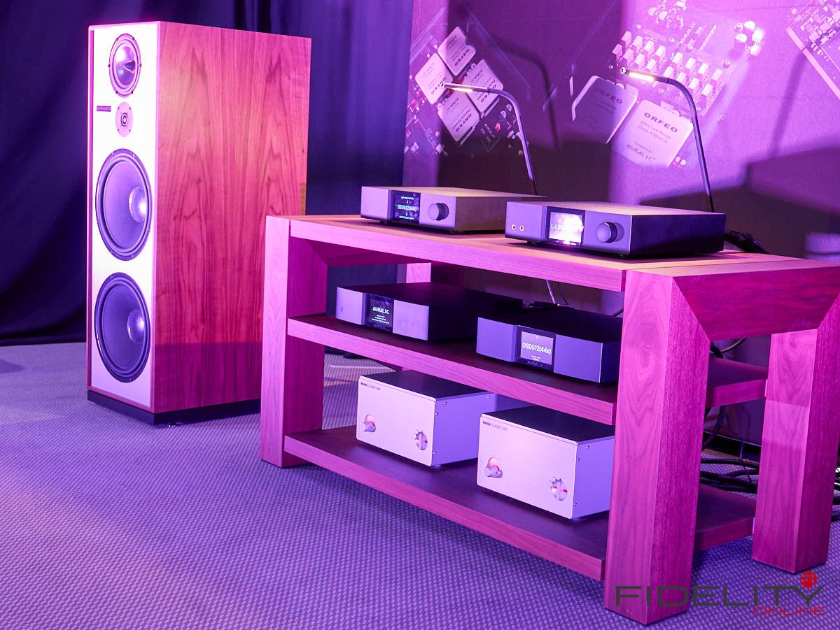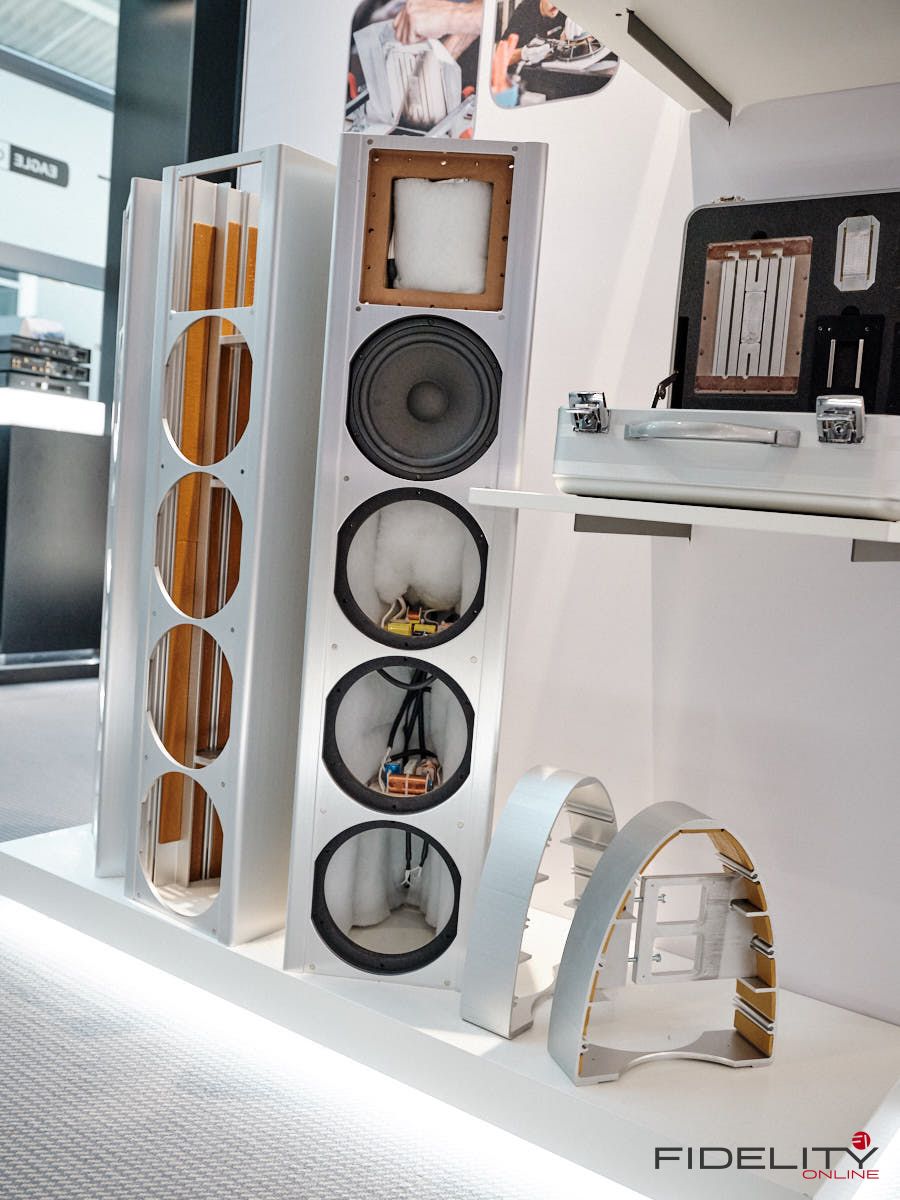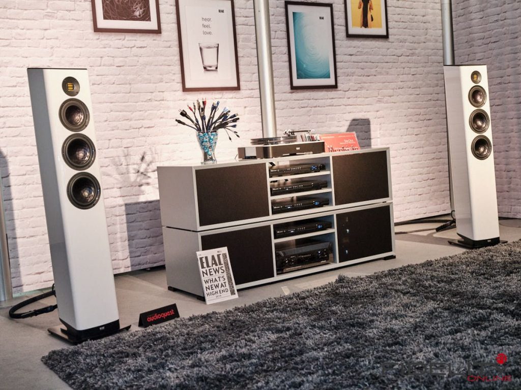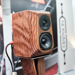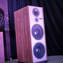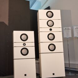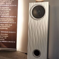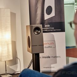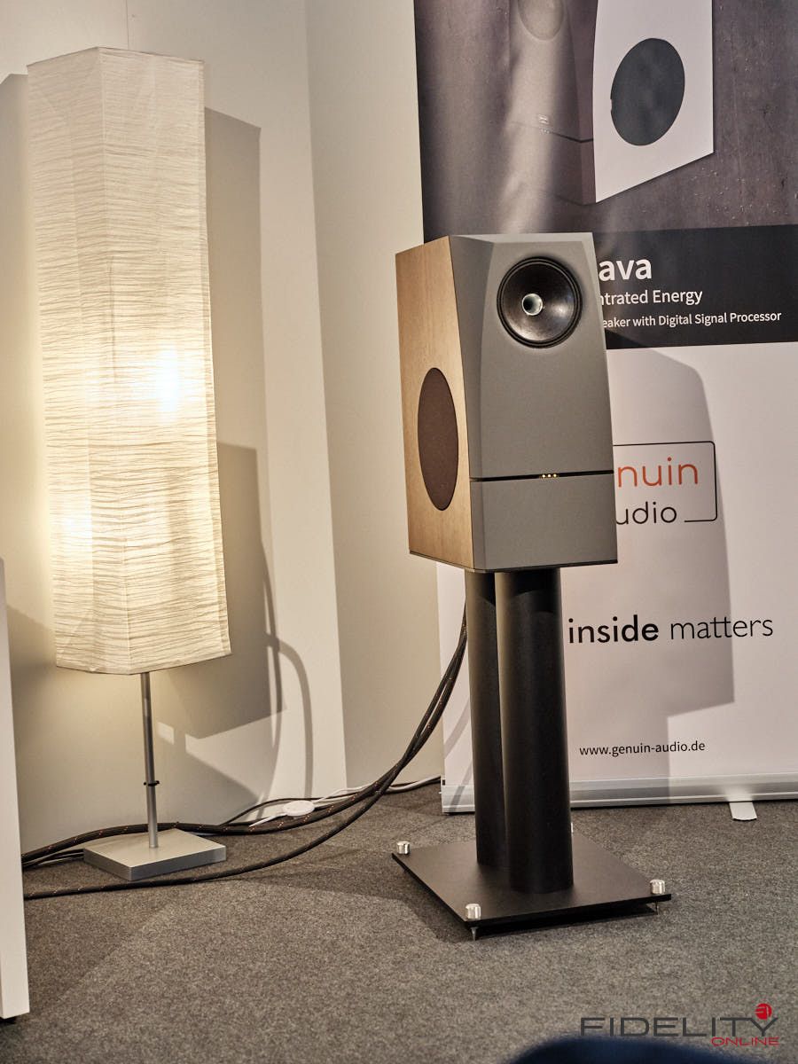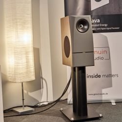 Den kleinsten großen Lautsprecher entdeckten wir bei Genuin Audio. Er Hört auf den Namen Ava. Ava ist ein Dreiwege-Aktivlautsprecher mit einem koaxialen Treiber auf der Front und einem seitlich angeordneten Bass. Die filigrane DSP-Architektur entzerrt das System und ermöglicht feine Raumkorrekturen. Dadurch spielte die Ava selbst im einem Vorführcontainer im Erdgeschoss der High End mit echten Monitorqualitäten. Selbst im Bass müssen keine Abstriche gemacht werden. Für uns eine der Überraschungen dieser Messe.