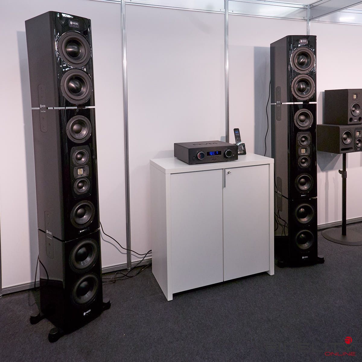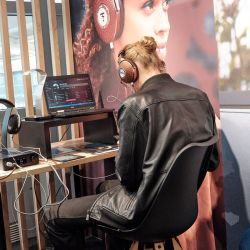 Klaus Heinz, Industrieveteran und unter anderem Gründer von Adam Audio war mit seiner neuen Firma HEDD (Heinz ElectroDynamic Designs) angereist und präsentierte seine aktiven Monitore auf einer nicht wirklich einladenden Ausstellungsfläche. Das Potenzial seiner Lautsprecher konnte man aber dennoch erahnen, obwohl es im Messetrubel nicht vollends zur Entfaltung kam. Deutlich besser gelang das seinem neuen HEDDphone, dem weltweit ersten Kopfhörer-Schwergewicht mit AMT-Treibern.