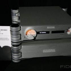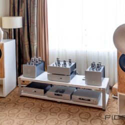 Wieder etwas völlig anderes sind die Kreationen von DeVore Fidelity. In diesem Jahr wurde das Orangutan Reference System präsentiert, bestehend aus zwei Gehäusen pro Kanal. Ist es der neutralste Lautsprecher auf dem Markt? Wir denken nicht. Der Kenner würde es eher als einen Ton beschreiben, das System hat einen Ton, einen zwar sehr schwach ausgeprägten, aber dennoch eigenen Character. Ist das schlimm? Überhaupt nicht! Die Musik erhält über die DeVores einen magischen Touch, der einen unmittelbar mitnimmt und uns sehr gut gefällt.