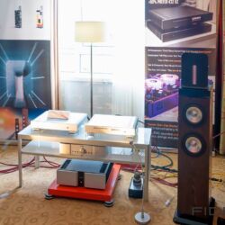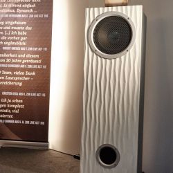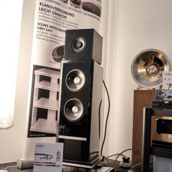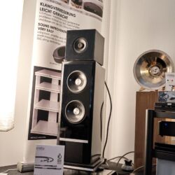 Eine weitere großartige Vorführung konnte man bei Lyravox genießen. Die Hamburger hatten die beiden neuen Modelle Karlotta Pure und Karl Pure in ihrer Vorführung. Pure bedeutet eine Weiterentwicklung der ursprünglichen Modelle. Lyravox hat auf das Feedback des Marktes reagiert und einen reinen Aktivlautsprecher ohne das ursprüngliche Straming Modul entwickelt. Uns kommt es so vor, als wäre dabei der ohnehin nicht zu kritisierende Klang dieser Schönheiten nochmals einen spürbaren Schritt nach vorn gegangen. Das größere Model Karl zeigte dabei eindrucksvoll, was ein ausgewachsener Aktivlautsprecher können sollte: Völlig entspannt und souverän wurde der Raum mit Musik durchflutet. Trotz eines abgrundtiefen Fundaments wirkte alles unangestrengt und völlig selbstverständlich, ein Erlebnis zum „drin Baden“. Und nebenbei (auch das liegt natürlich wieder im Auge des Betrachters) auch ein wunderbar gestalteter Lautsprecher, der von uns den Preis des gelungenen Designs bekommen würde.