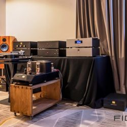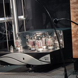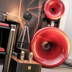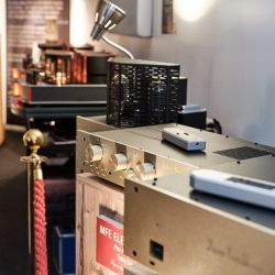 Wie jedes Jahr war Silbatone aus Südkorea mit seiner eigenen Elektronik nebst riesigem historischen Hornsystem von Western Electric angereist. Klang es am ersten Tag der Messe noch – sagen wir – historisch, so war davon ab dem zweiten Tag nichts mehr zu spüren. Die Eingeengtheit war verschwunden und das System spielte völlig frei auf. In der letzten Stunde der Messe ging es dann so richtig ab. DUB-Reggae in Konzertlautstärke, kein Problem für die außergewöhnliche Anlage. Kraftwerk zum Anfassen? Ebenfalls kein Ding. Classic Rock, ja bitte … und das alles an einem Röhrenfrontend von wenigen Watt und fast 100 Jahre alten „Leistungs“-Röhren.