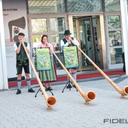 ESD Acoustic aus China kam dieses Jahr mit gleich zwei Systemen nach München. Dragon und Phoenix. Nach wie vor sind die Vorführcontainer einfach zu klein für derlei riesige Hornsysteme und man kann ihr Potenzial nur erahnen. Das hat die Mannschaft von ESD aber nicht davon abgehalten eine der lautesten Standparties zu feiern und das Phoenix-System mal so richtig auszuloten. Stilecht gab es Bier und Brezn, ein Wunschkonzert der Gäste und spontane Verbrüderungen. Als ein Stück von AC/DC in Originallautstärke loshämmerte, drehte sich ein augenscheinlich betagter älterer Herr mit Stock und mit einem Lachen auf dem Gesicht zu mir um: „Dabei kann man nicht allein trinken – ich bin der Konrad“. Klasse, was Musik auslöst!