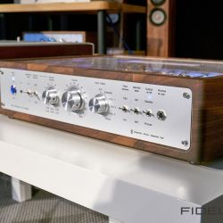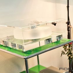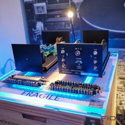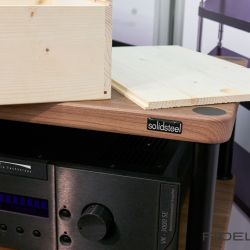Ein Produkt aus dem passiven Bereich mit ebenso großer Reife ist die Borg von Fink-Team. Die Borg ist ein mittelgroßer Zweiwege-Lautsprecher und über ihre Qualitäten muss man keine großen Worte verlieren. Immerhin ist ihr Entwickler Karl-Heinz Fink einer der umtriebigsten und versiertesten Lautsprecherkonstrukteure unserer Zeit, der bereits unzählige Boxen entwickelte, unter anderem für Marken wie Naim. Für seine Borg hat er alle Register seines Erfahrungsschatzes gezogen, was der gerade noch dezenten Standbox zu einem überirdisch kotrollierten und souveränen Auftritt verhilft. Die Ausstellungsstücke – so viel dürfen schon mal verraten – landeten am Tag nach der Messe in unserer Redaktion.