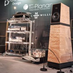 Immer wieder gut für eine Überraschung sind die offenen Schallwände von Pure Audio Project. Der Hersteller bietet ein Baukastensystem mit unterschiedlichen Chassis-Bestückungen an, das auch im Nachhinein verändert werden kann. In München spielte ein großes System, dessen Hauptakteure zwei Breitbandchassis von Voxativ waren. Angetrieben von einem beeindruckenden Röhren-Frontend offenbarten diese dynamischen Wandler Qualitäten, die man sonst nur von großen Magneto- oder Elektrostaten kennt und das zu Preisen, die nicht durch die Decke gehen. Ein unbedingter Tip.