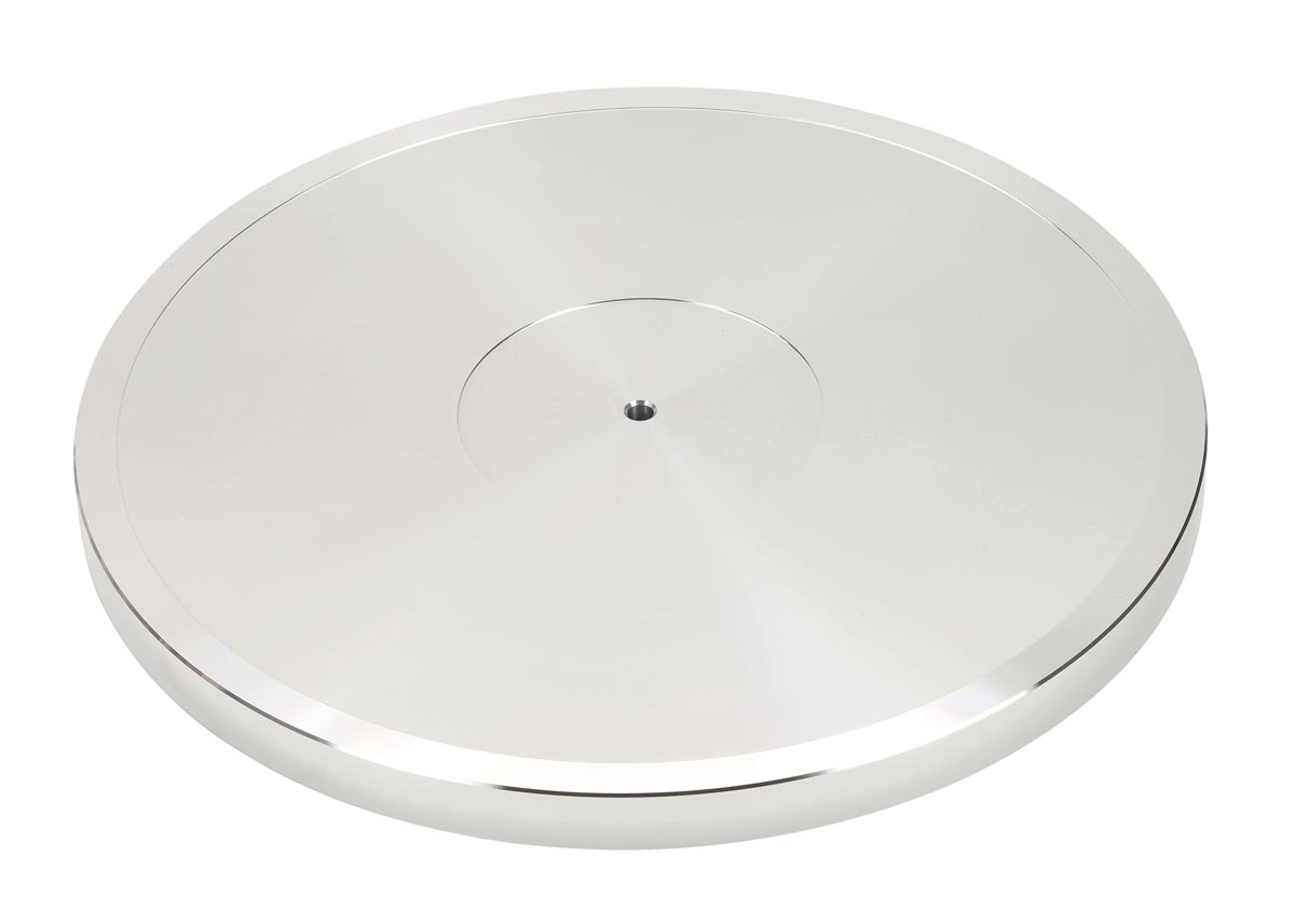 Größte Änderung ist der Plattenteller. Hier kommt jetzt ein aus dem Vollen gefräster 2,1 kg schwerer Aluminiumteller zum Einsatz. Dieser sorgt bei dem Plattenspieler für mehr Laufruhe und minimiert zusätzlich Störeinflüsse von außerhalb. Selbstredend ist der Plattenteller auf der Unterseite zusätzlich bedämpft um die Eigenresonanz zu minimieren. Angetrieben wird er, wie gewohnt, über einen geschliffenen Flachriemen, der den Plattenspieler wahlweise auf 33 1/3, 45 oder 78 Umdrehungen pro Minute bringt.