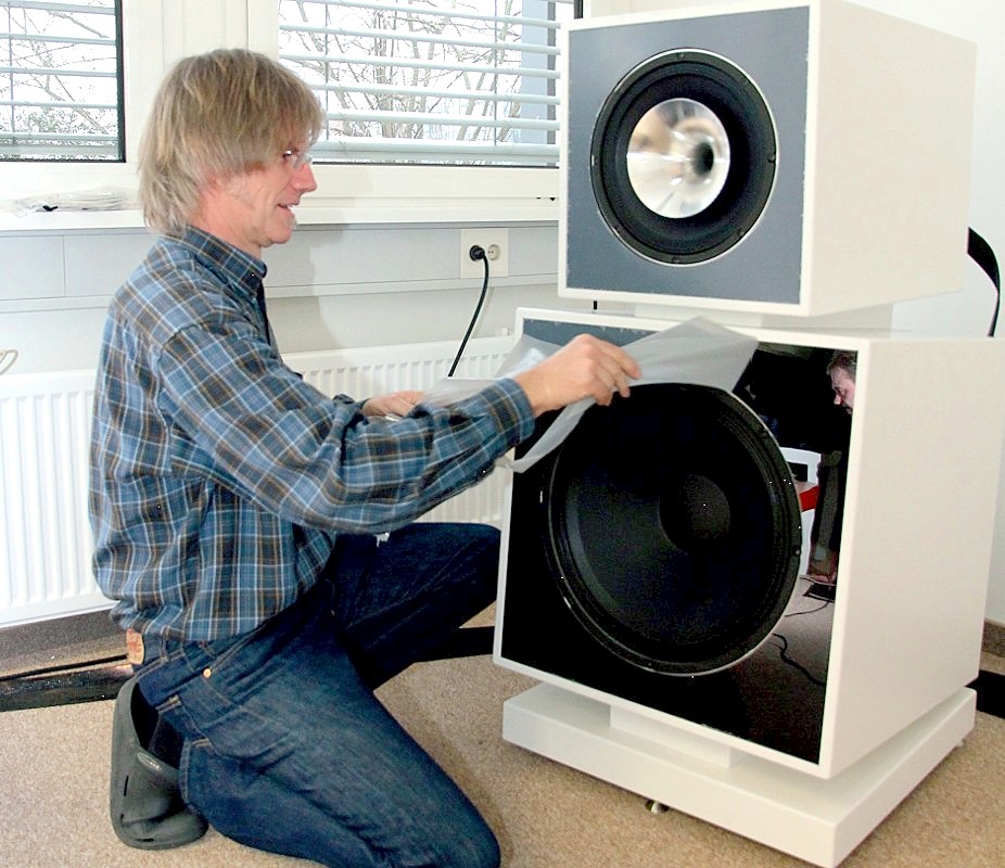 Ob ich dafür dankbar sein sollte? Ein Lautsprecherkorb mit 46 Zentimetern Durchmesser ist zu Hause wirklich riesig. In einem halbwegs normalen Wohnzimmer sorgt so ein Monster immer für Aufsehen.