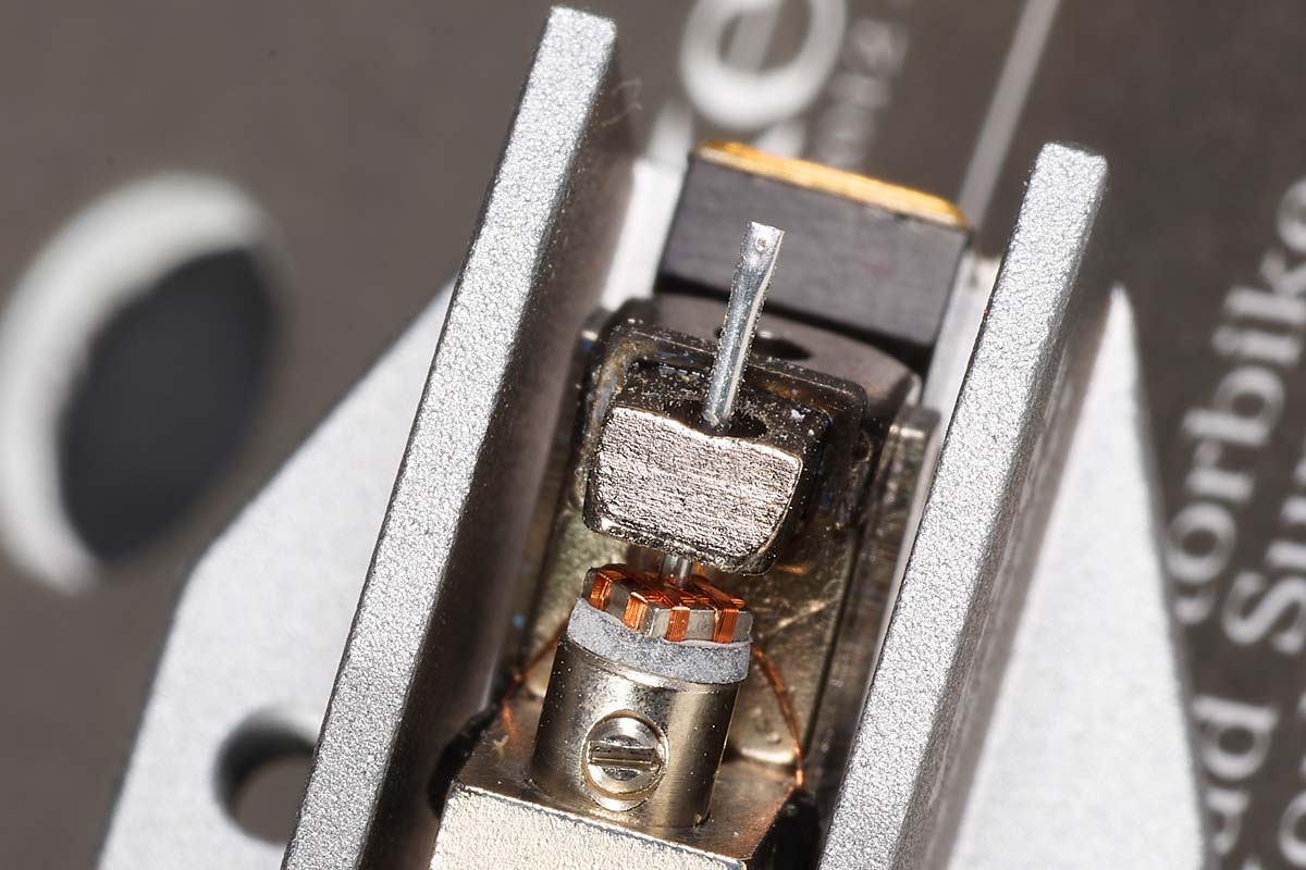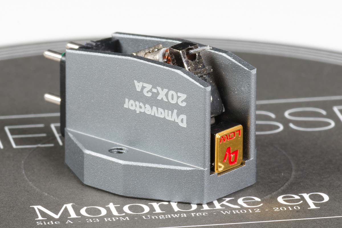 Geblieben ist die Möglichkeit, zwischen einer Low-Output- oder einer High-Output-Version (Ausgangsspannung 0,3 mV oder 2,8 mV) wählen zu können. Beiden gemein ist der auffallend kurze und konisch geformte Nadelträger aus gehärtetem Aluminium, an dessen Spitze sich ein Diamant mit Micro-Ridge-Schliff befindet. Die mir zur Verfügung gestellte Low-Output-Version gehört mit sechs Ohm Innenwiderstand zu den niederohmigen MCs und sollte mit Eingangswiderständen auf Seite des Phonovorverstärkers mit mehr als 30 Ohm abgeschlossen werden. Das Gewicht des DV-20X2A stellt mit 9,2 Gramm für keinen mir bekannten Tonarm eine Herausforderung dar. Die Nadelnachgiebigkeit von 12 µm/mN deutet auf eine optimale effektive Masse zwischen 10 bis 20 Gramm (mittelschwer bis schwer) hin. Damit wird ein weiteres Geheimnis des Erfolgs der 20er-Baureihe von Dynavector offenbar: Das DV-20X2A kann man in jedem gängigen Tonarm und an jedem rauscharmen Phonoeingang problemlos betreiben. Dank der Gewinde des mit genügend geraden Kanten versehenen Gehäuses und der eindeutig markierten Kontaktstifte für den Anschluss an den Tonarm ist auch die Montage keine besondere Herausforderung. Der „scharfe“ Micro-Ridge-Schliff verlangt aber durchaus nach etwas Sorgfalt bei der Justage.