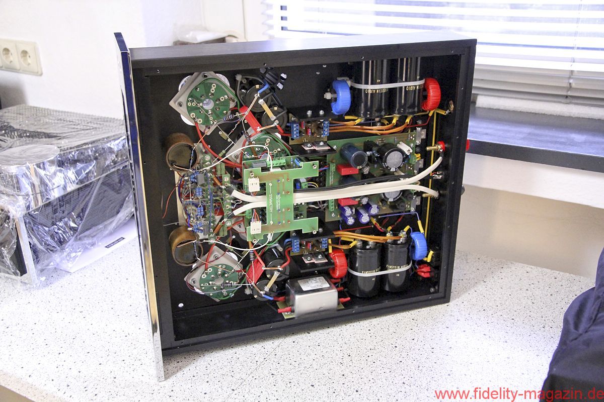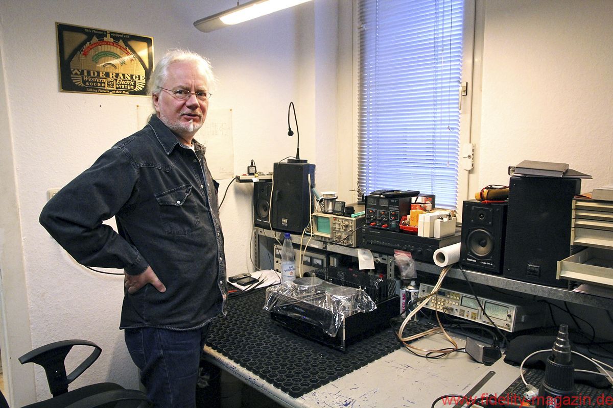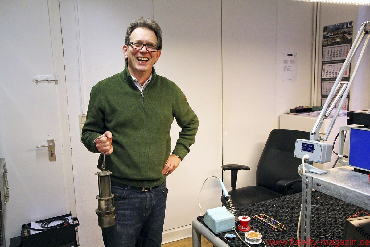 Damit schwenken wir vom optischen Auftritt zu den inneren Werten, zu den Schaltungen des Chefentwicklers Rolf Weiler. Der besitzt tatsächlich eine gewisse Ähnlichkeit zu Albert E., dilettiert allerdings lieber am Saxofon als an der Violine, wenn man ihn fragt. Das allerdings ist nicht so ganz einfach, denn Rolf Weiler liebt seine Ruhe, meidet die Öffentlichkeit und arbeitet folglich nachts. Immerhin habe ich den Tüftler, der neben seiner Tätigkeit am Max-Planck-Institut seit den Gründungstagen der Firma quasi als Mastermind unter Vertrag steht, in 25 Jahren schon zweimal getroffen. Er genießt auch unter Elektronikexperten einen sagenhaften Ruf, hat er doch die üblichen, seit Jahrzehnten immer nur variierten Verstärkerschaltungen um die eine oder andere völlig neue und damit wirklich innovative Schaltung bereichert.