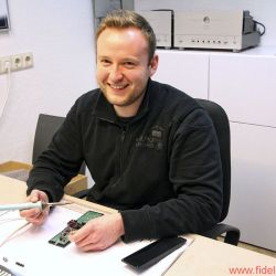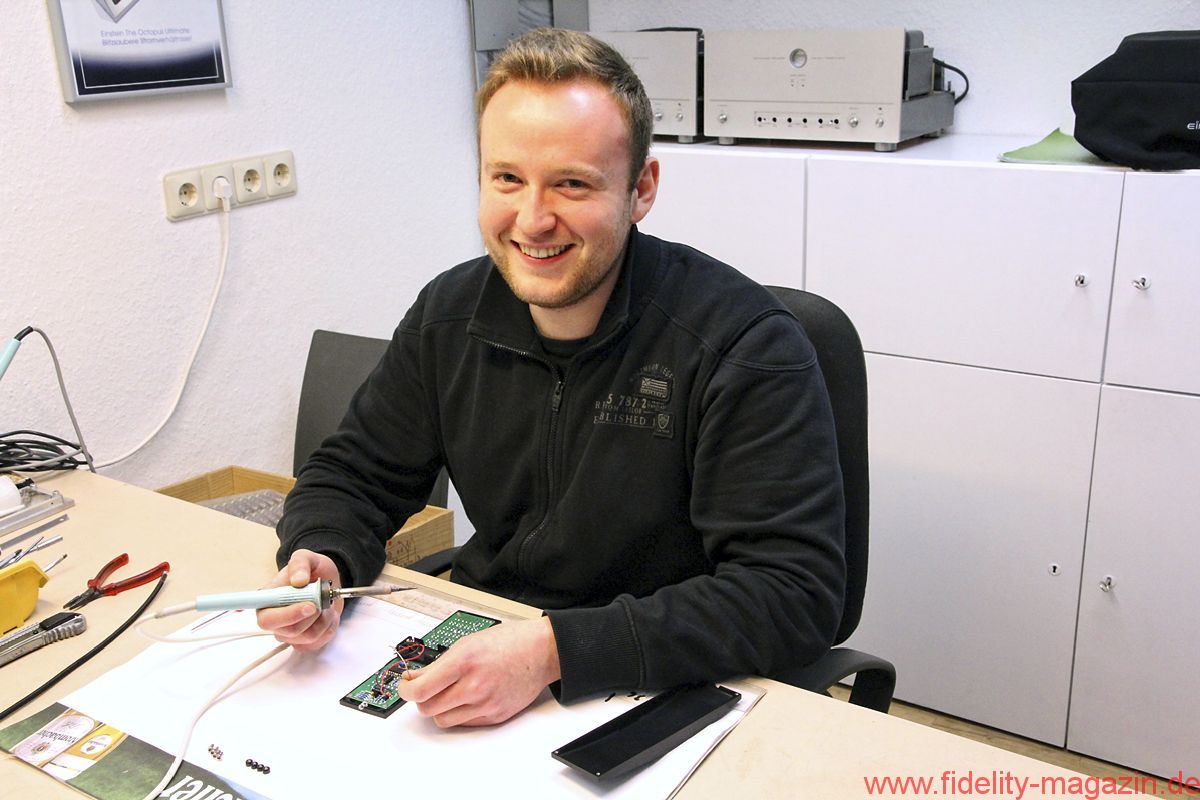 Jeder Techniker sollte alles beherrschen, was zur sorgfältigen Anfertigung eines Produkts nötig ist, und wird entsprechend geschult. Zum Beispiel auch Hendrik Dörr. Der Werkstudent gehört seit rund einem halben Jahr zum Einstein-Team, hat bisher einen exzellenten Eindruck hinterlassen und „soll mal nicht so schnell studieren“ – sagt Volker Bohlmeier und grinst. Nach dem Diplom dürften dem Maschinenbaustudenten die Türen bei Einstein weit offenstehen. Bis dahin wird er sich auch weiterhin mit Electronica und House und Lounge entspannen.