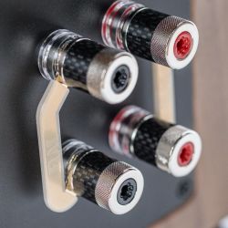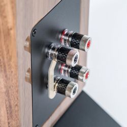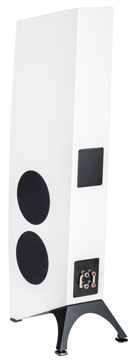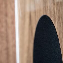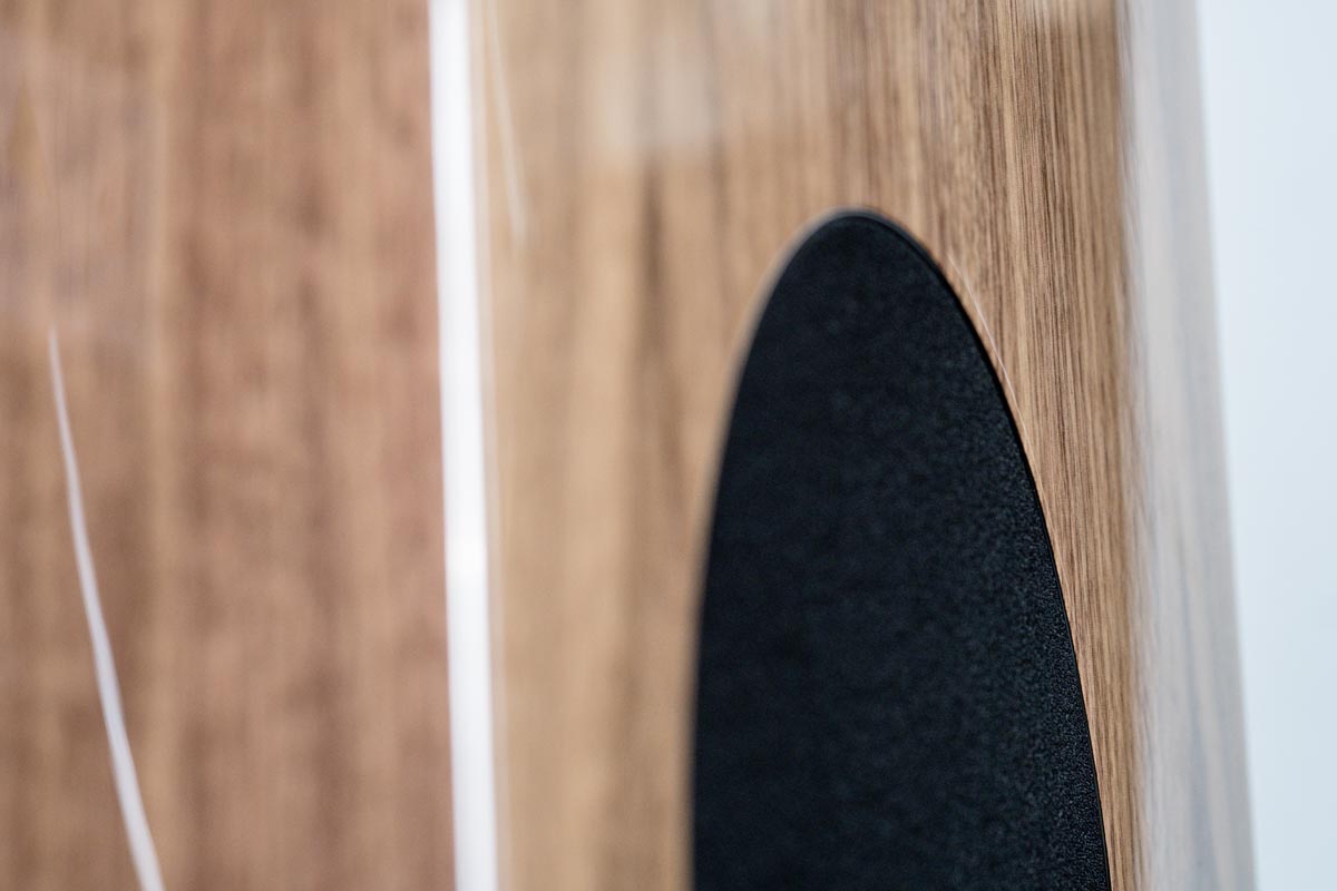 Es folgte die Concentro S 507, die mit ihrer Formensprache einen anderen, wenngleich noch immer eigenständigen Weg einschlug. Im Gegensatz zu ihren beiden größeren Geschwistern wagt die Concentro S „Kante“ und prägt mit ihrem leicht nach hinten geneigten und sich verjüngenden Korpus einen ganz eigenen Ausdruck. Nun stellt ihr Elac die neue S 509 zur Seite. Die traditionsreiche 500er-Baureihe der Kieler wird damit ein fester Teil der Concentro-Familie. Die herausragende Optik der Neuen wird von einem Sockel unterstrichen, dem die Produktdesigner einen „High-Heel-Effekt“ zuschreiben, dem man sofort beipflichtet, sobald man die Concentro S von der Seite betrachtet. In jedem Fall sorgt er für absolute Standsicherheit und effiziente Entkopplung vom Untergrund.