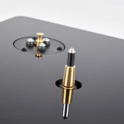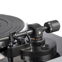Der Aluminiumteller liegt auf einem Subteller, dessen gehärtete Stahlachse auf einer 8-Millimeter-Rubinkugel rotiert. Die Achse selbst steckt in Sinterbronzebuchsen. Das alles erweckt den Eindruck solider Handwerkskunst. Der Motor ist sowohl vom Chassis als auch vom Tonarm entkoppelt und erweist sich als recht zugkräftig. So waren selbst im langsamen Satz von Beethovens Hammerklaviersonate bei den Passagen, in denen Maurizio Pollini ins Grübeln verfällt, keine nennenswerten Tonhöhenschwankungen vernehmbar.